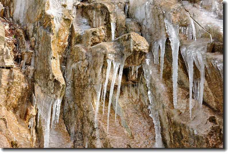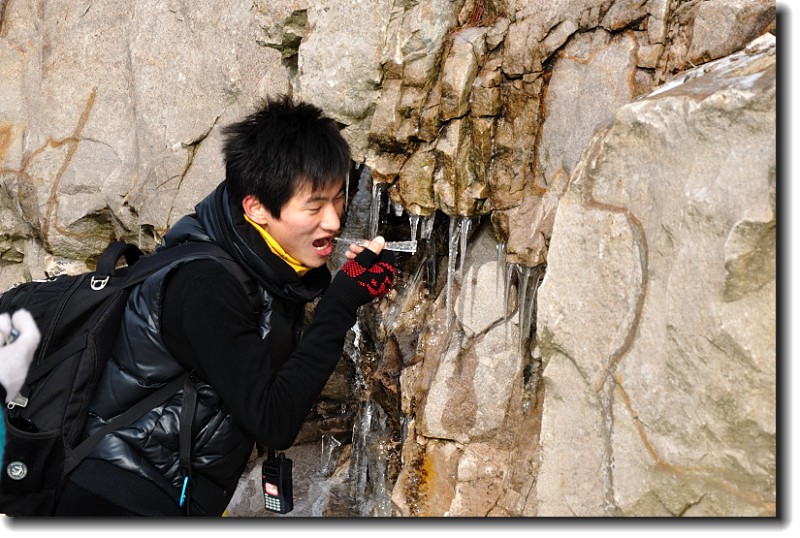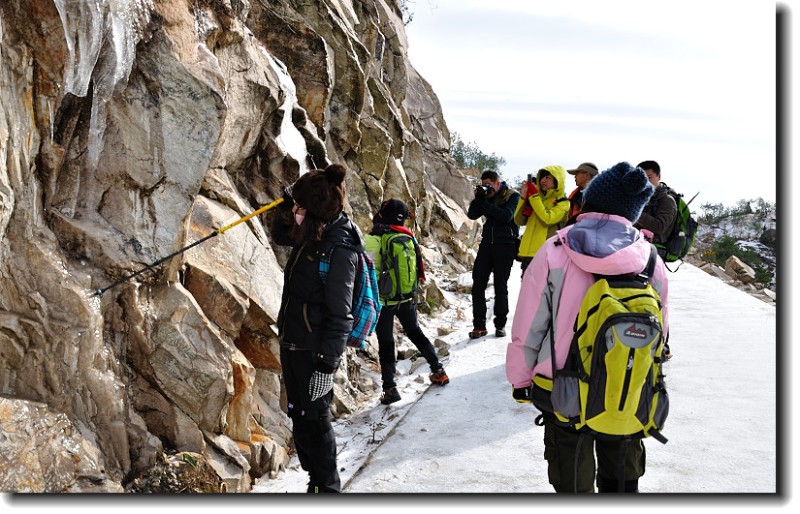 岩石上的冰挂是这次徒步中的一个大亮点。