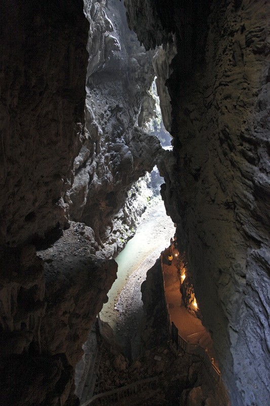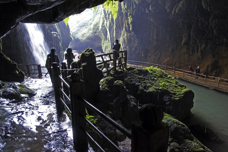 通灵大峡谷位于中越边境的广西靖西县,大峡谷原来是一个盲谷,由于地质运动,盲谷顶部陷落,犹如地球突然裂开一条缝,形成了长约2800米宽200多米深300米狭长而深邃的峡谷。峡谷内四周悬崖峻峭,气势壮观,古树老藤遮天蔽日生机盎然;荟萃了举世罕见的特高瀑布、洞中瀑布、地下河、峡谷溪流、洞穴观光、原始植被等自然景观与人文景观;这里有多达两千多种各类珍稀植物和濒临灭绝的国家一类保护植物,如和恐龙同时代的桫椤群、莲子观音坐蕨等蕨类植物。高深的峡谷、清澈的溪流、绿色的植被和落差188米亚洲单级落差最高的瀑布―通灵大瀑布交相辉映,整个峡谷满谷苍翠,涧水潺潺,弥漫着沁人心脾的灵气与活力。