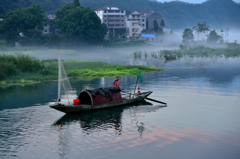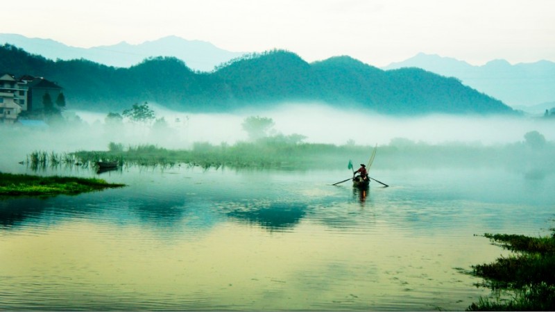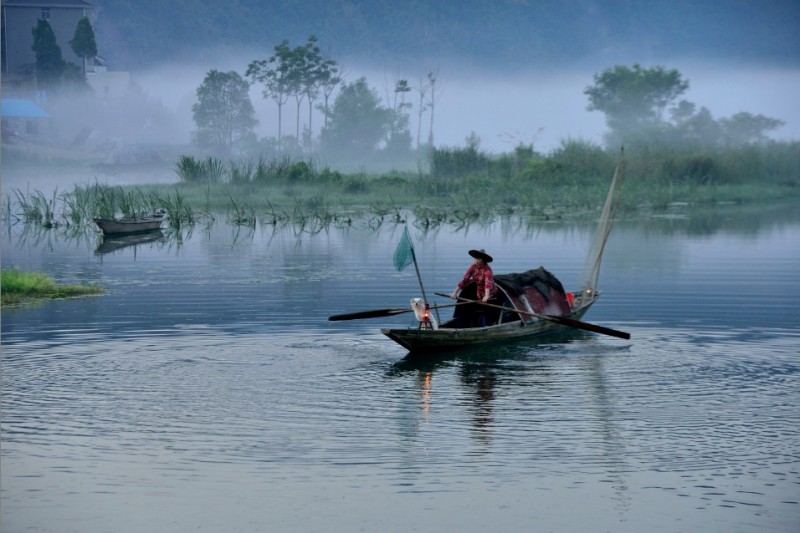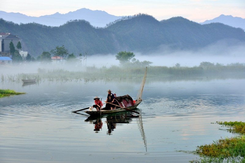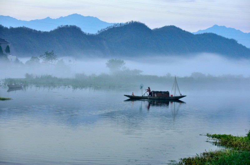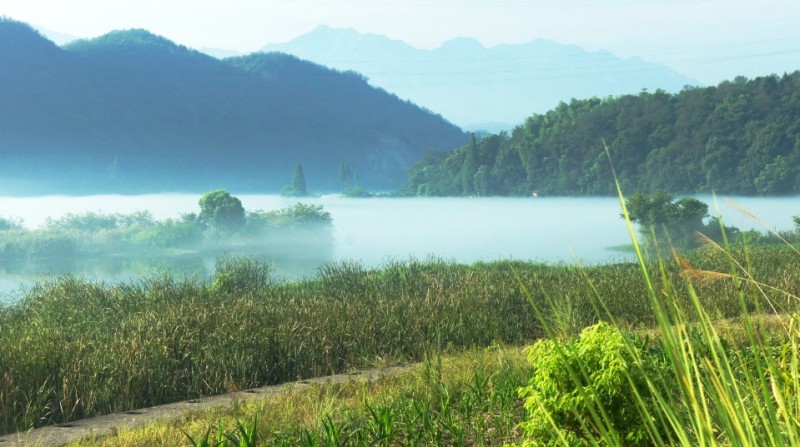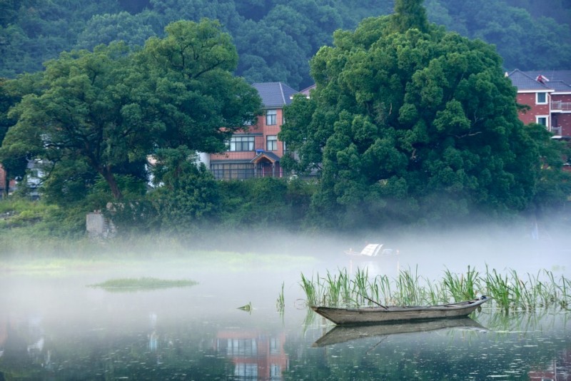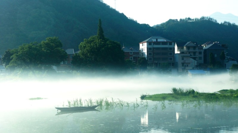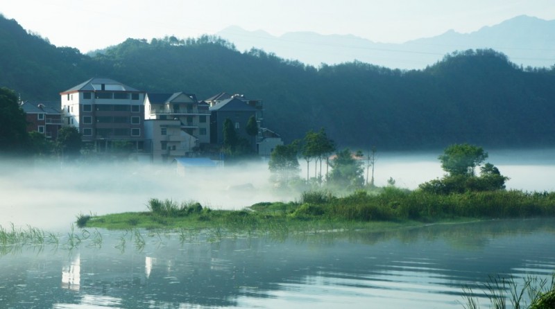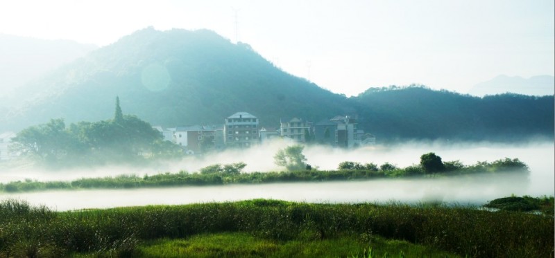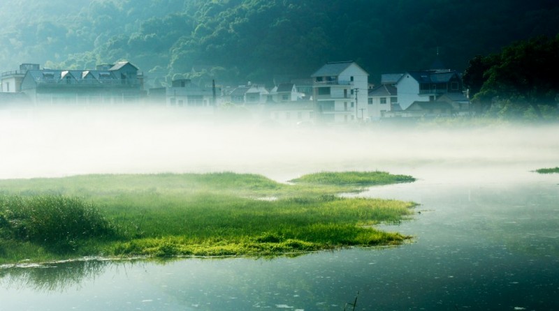 下涯奇雾梦幻仙境 里叶荷花亭亭玉立 兰溪白鹭展翅翱翔
