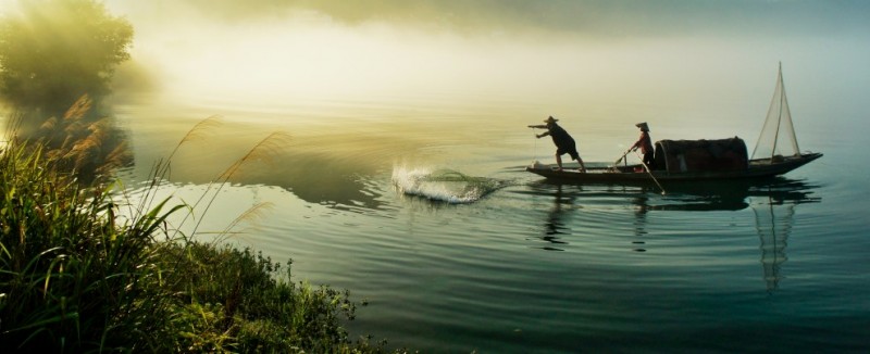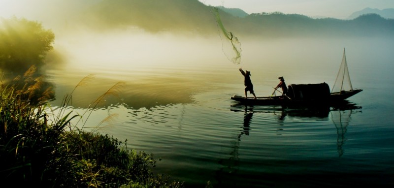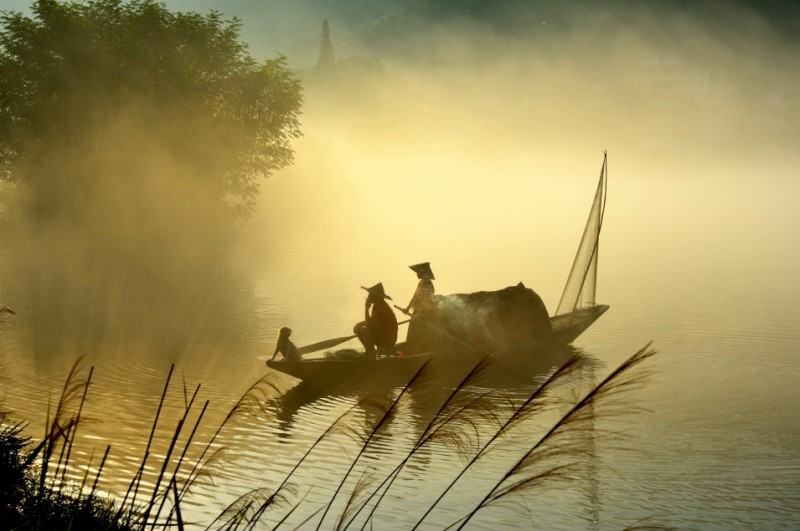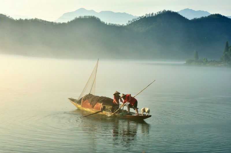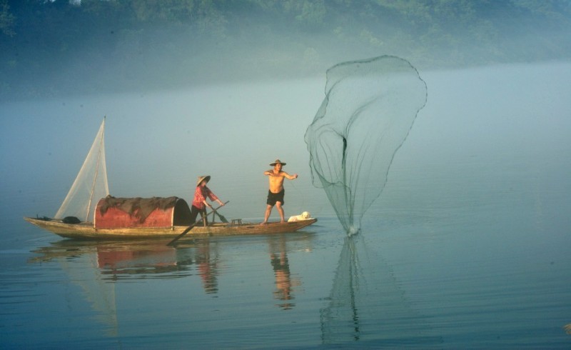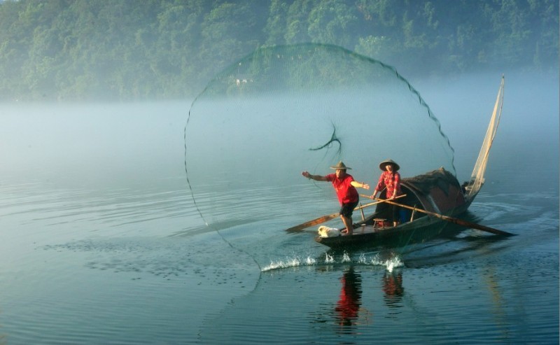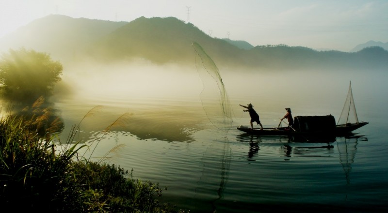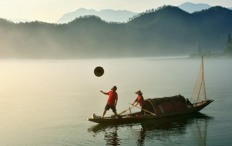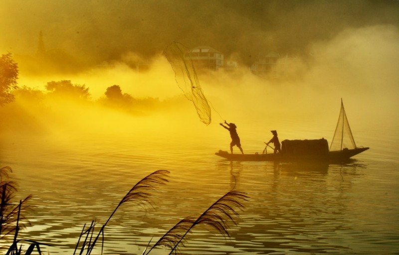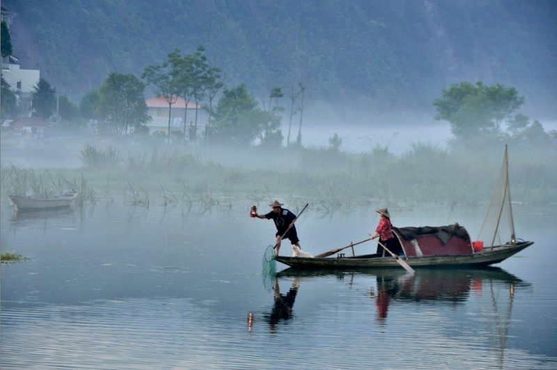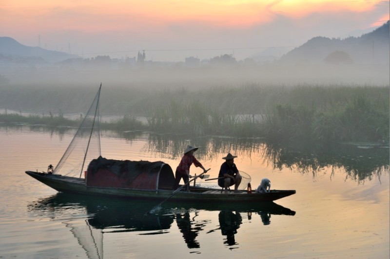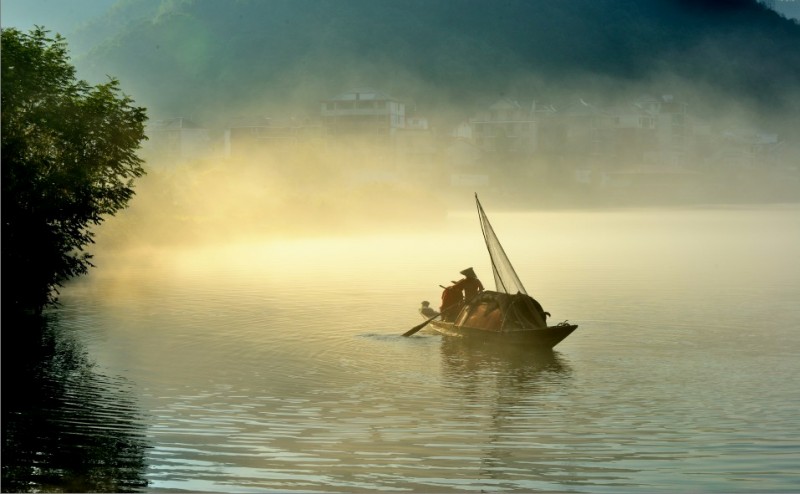 下涯奇雾梦幻仙境 里叶荷花亭亭玉立 兰溪白鹭展翅翱翔