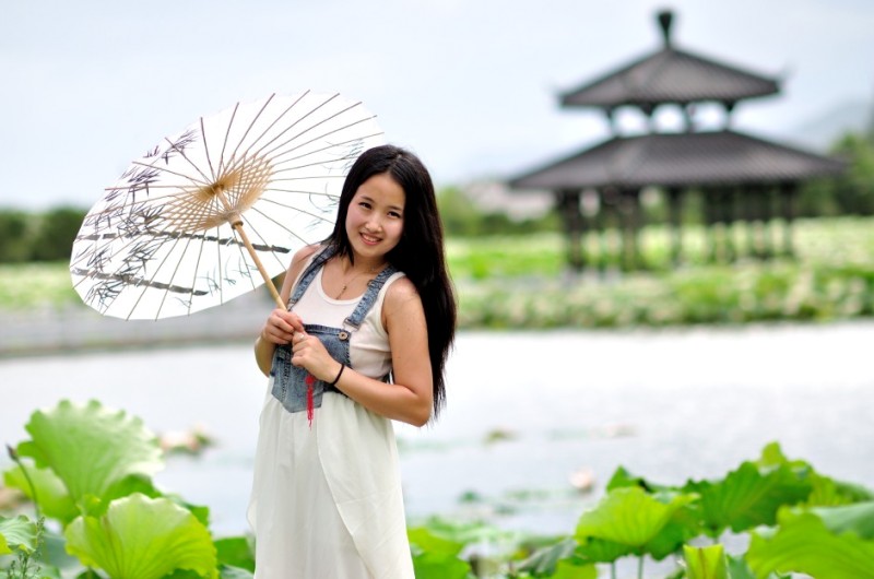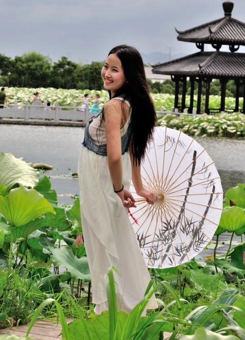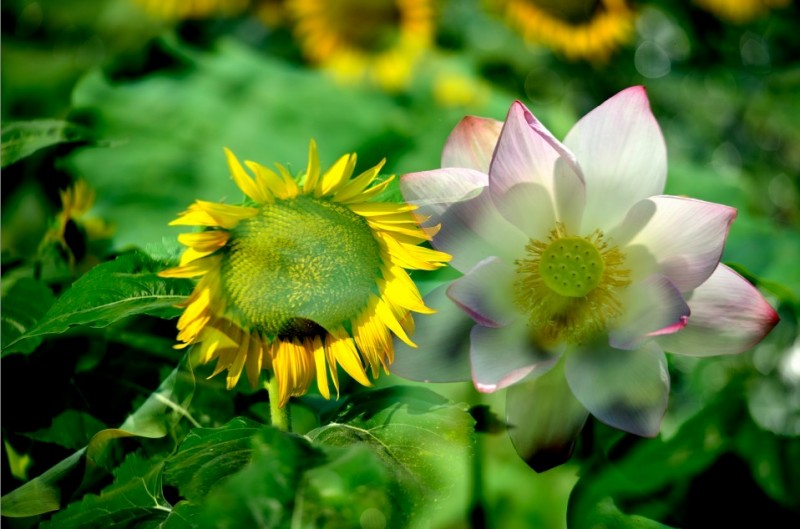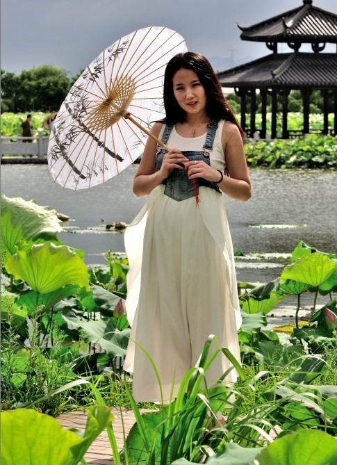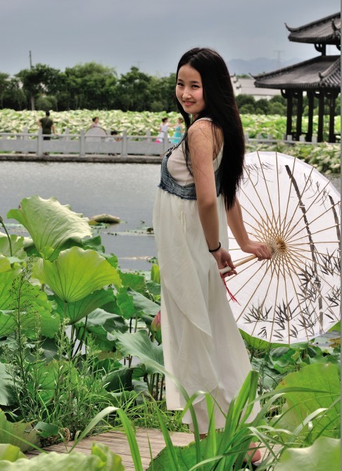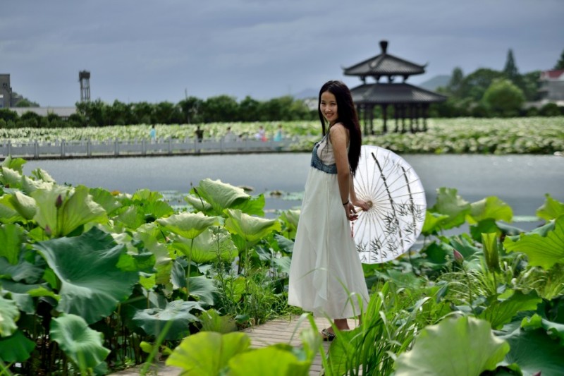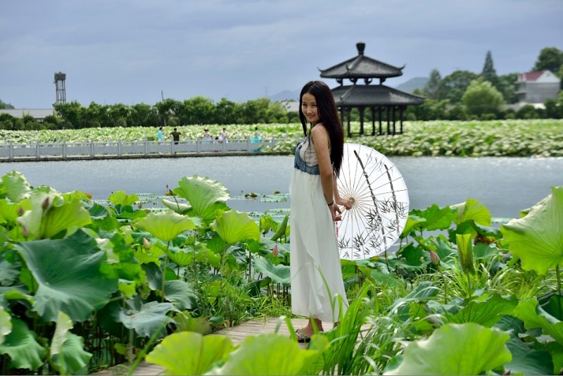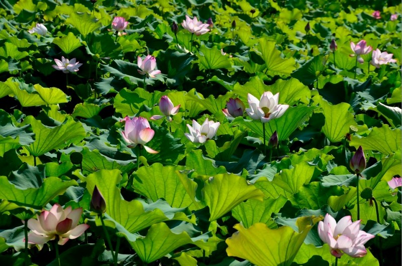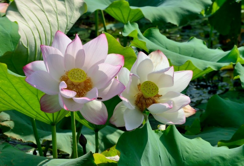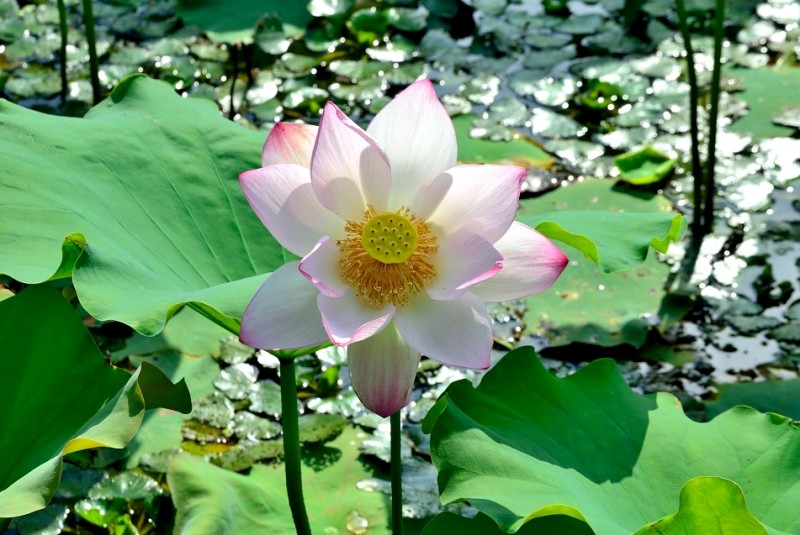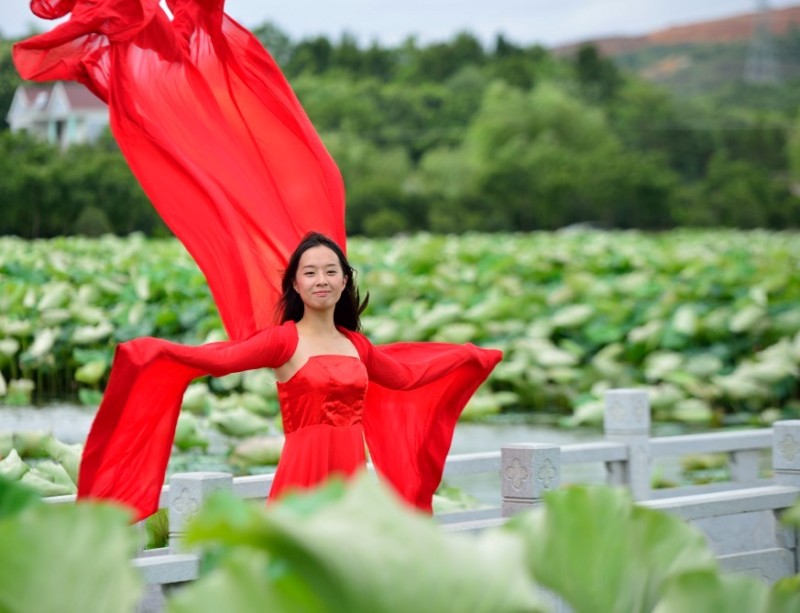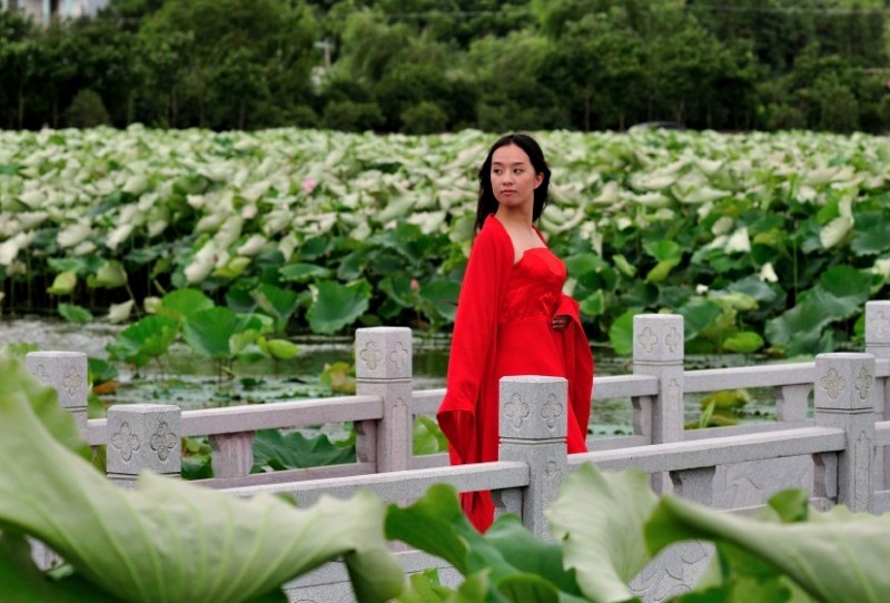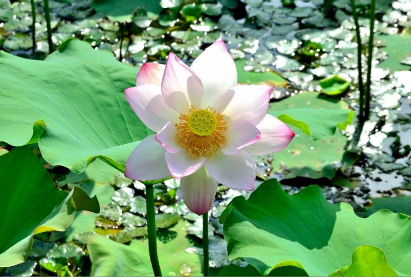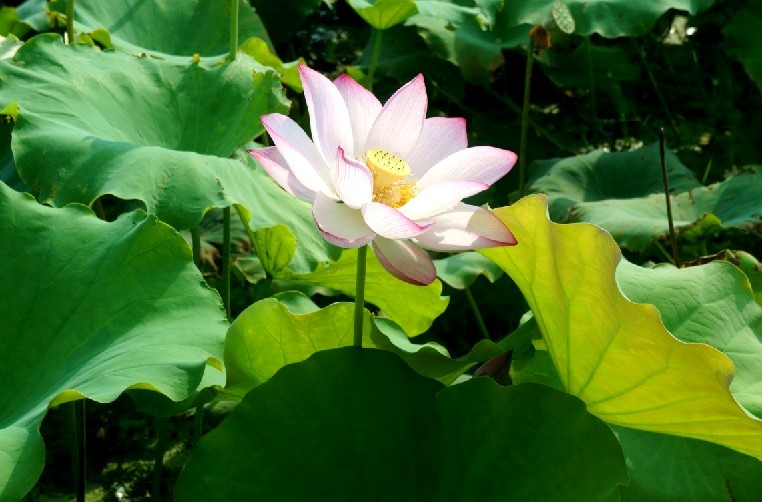里叶荷花亭亭玉立