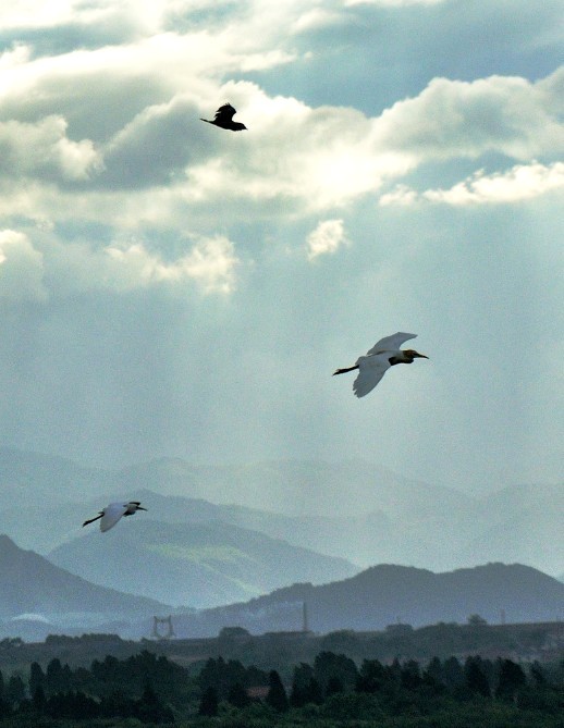 兰溪白鹭展翅翱翔