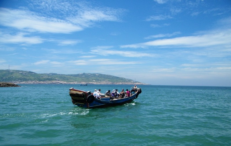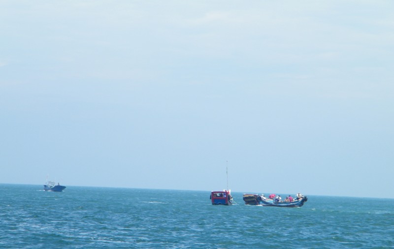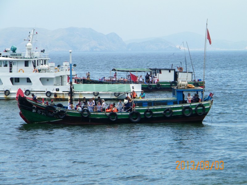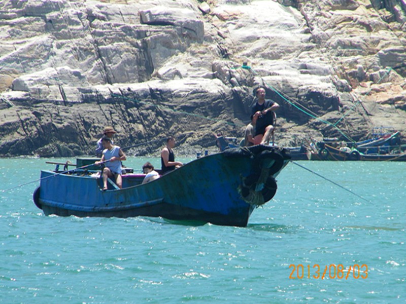 这个月开始,从庙子湖到东福山的船票要在舟山出发的轮船上买票,而且每人只能买三张。一上船“伊拉克”就带我们赶紧去排队,还是只买到了21张票。后来46个人的团队决定分成二路出发,买到票的先坐客轮到东福山,没有买到票的随后租渔船跟进。