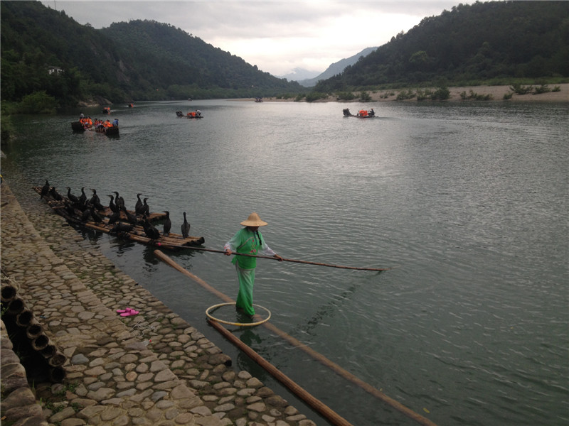 傍晚的楠溪江和扑鱼归来的鸬鹚
