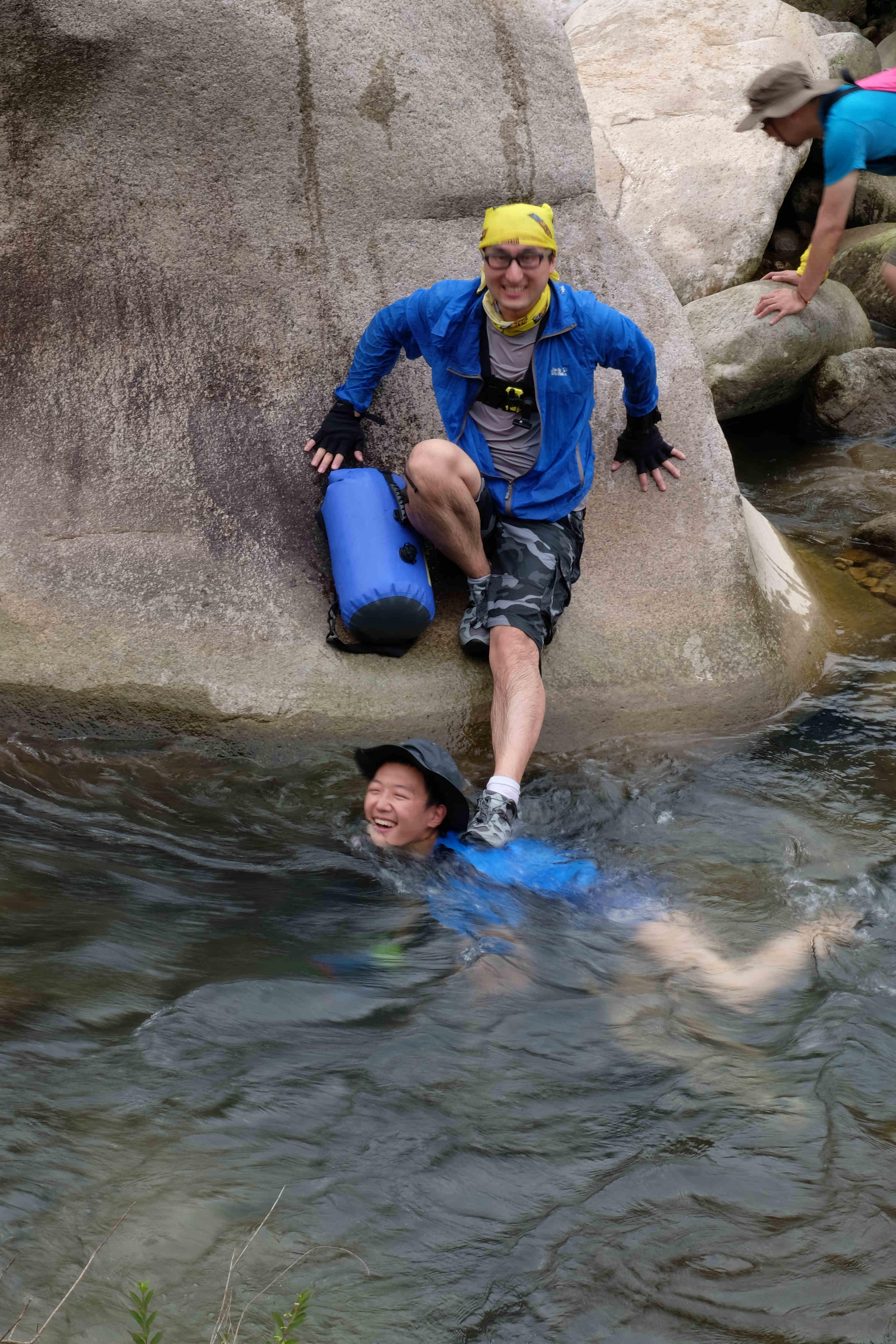 溯溪开始,大家看到水异常兴奋,扑通扑通就往下跳