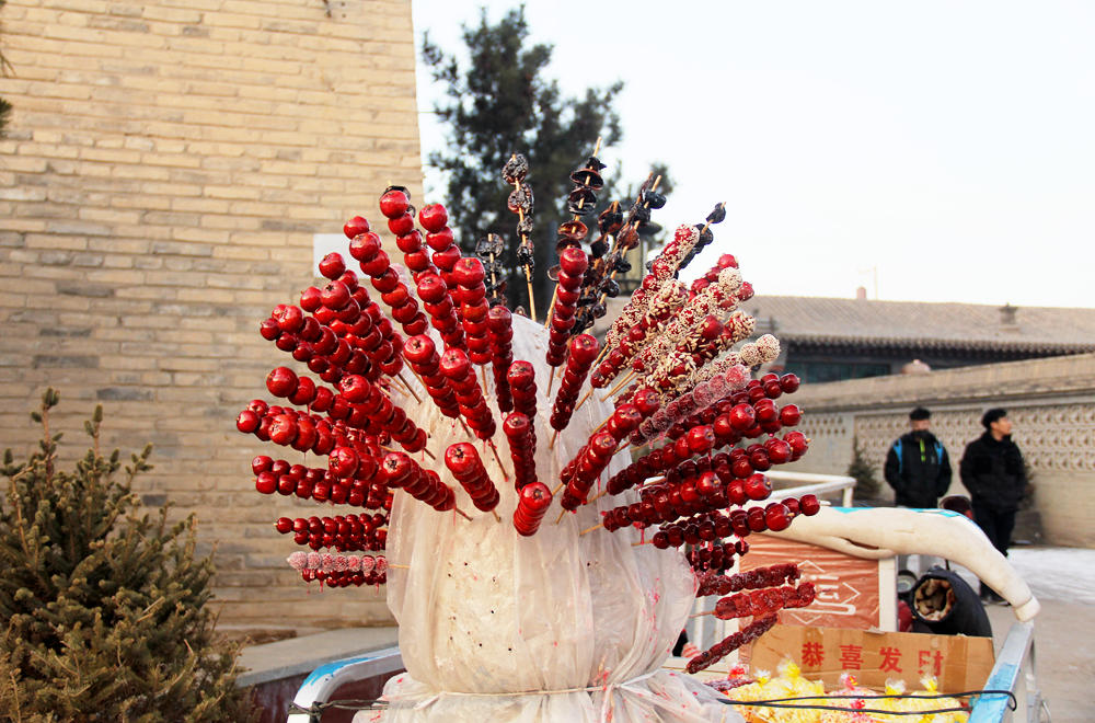 来到暖泉,当然要品尝一下当地的小吃,暖泉的风味小吃独具特色,黄糕、糊糊面、粉坨、豆腐干、辣椒油、糖大饼等远近闻名,令人食指大动。吃饱喝足,继续穿梭于古堡的大街小巷。可能由于天气太冷的缘故门厅有些冷落,食客寥寥无几,也可能是一些凉粉类的食物不适合这个季节,我们找了一家店面点了几样砂锅还有当地特色的土豆饼、豆干、骡子肉等,感觉口味还不错,怕耽误了打树花演出我们吃完饭就出发前往打树花广场了。