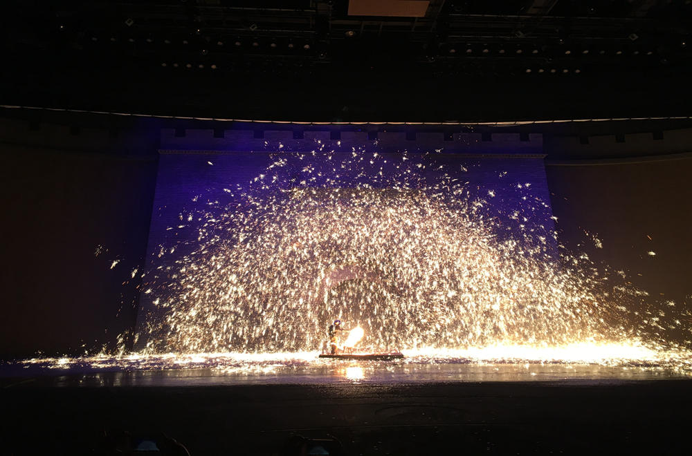 打树花是暖泉古镇一项传统文化民俗活动,距今已经有500多年历史,由百年传承的民间艺人将生铁放入炼铁炉中,融化成1600度的高温铁水,打树花民间艺人反穿羊皮袄,头戴毡皮帽,手拿柳木勺,将滚烫的铁水一勺勺泼洒在古堡城墙上,铁水遇冷刹那间迸溅四射,形成万朵火树金花,如瀑布倾泻而下,另人惊艳不已。观赏打树花,我们选择的是河北省目前唯一的室内实景演出剧场—《天下第一堡》,是首次将“打树花”搬进了室内,绚烂的树花恰似“梦里蔚州不思归,树花烟火暖泉飞!”看完打树花演出后,我们回到了客栈,可是大家的思绪却久久不能从打树花的震撼场景当中走出来,大家都表示值得一看。
