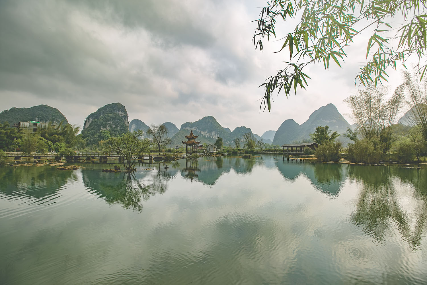 明仕田园——山环水绕,风光俊朗,满目苍翠,四季如碧用来形容明仕田园风光最合适不过了,它有着美丽的传说:传说,很久很久以前,南海有一条妖龙,因羡慕桂林山水之美景,便变作人形,到桂林游览,返回时,它施了妖法,将桂林的一段迷人山水缩小,藏入袋中,然后乘云南归,欲带回南海。谁知它的这一举动,被玉皇大帝知道了,玉皇大帝便派出雷公,用大斧将妖龙劈死妖龙死后,它口袋里的那段山水便掉下来,刚好落到明仕的地面上,所以,明仕的山水景色和桂林的一样美。