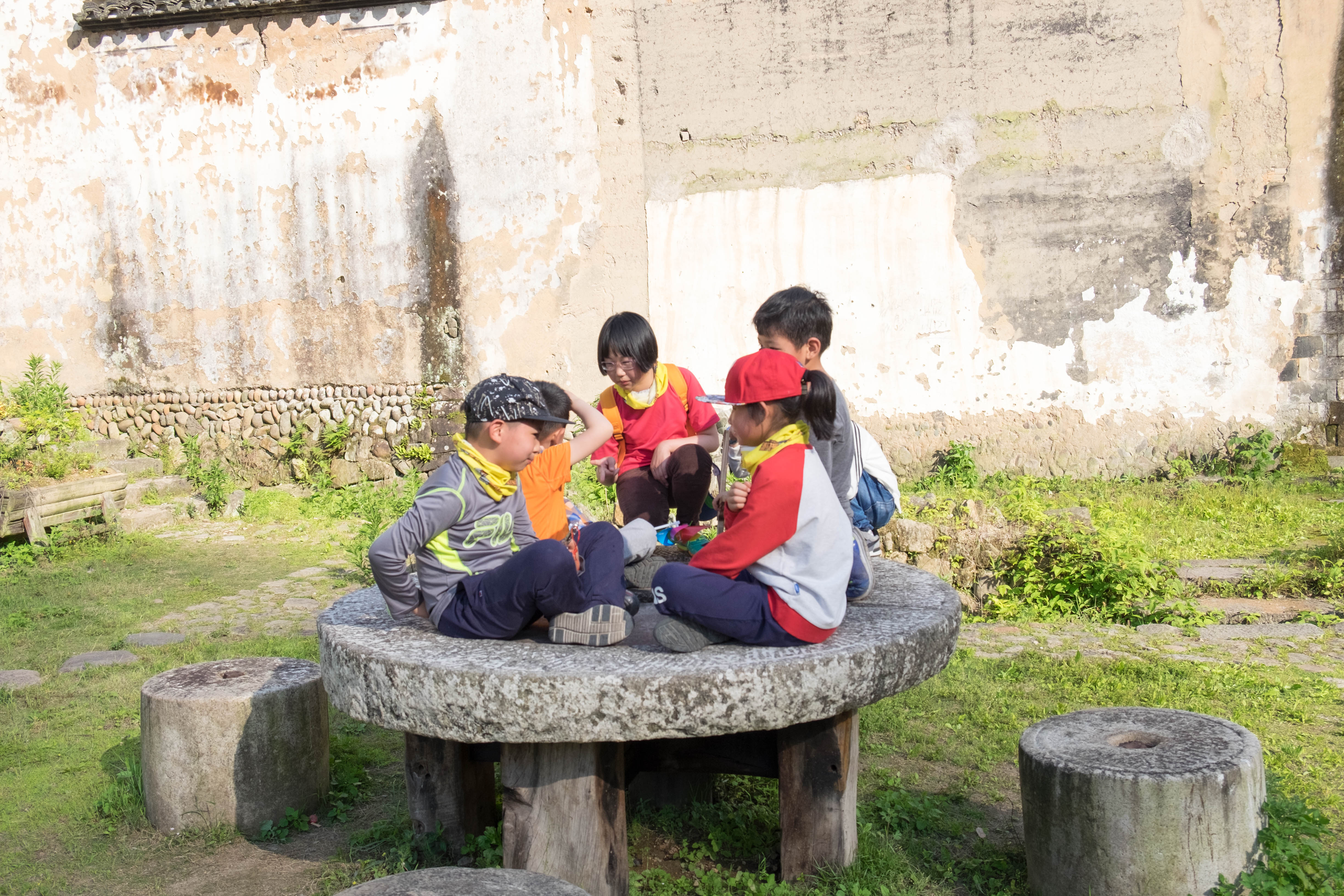小游侠在石桌上玩猜拳,美好的童年时光。。。