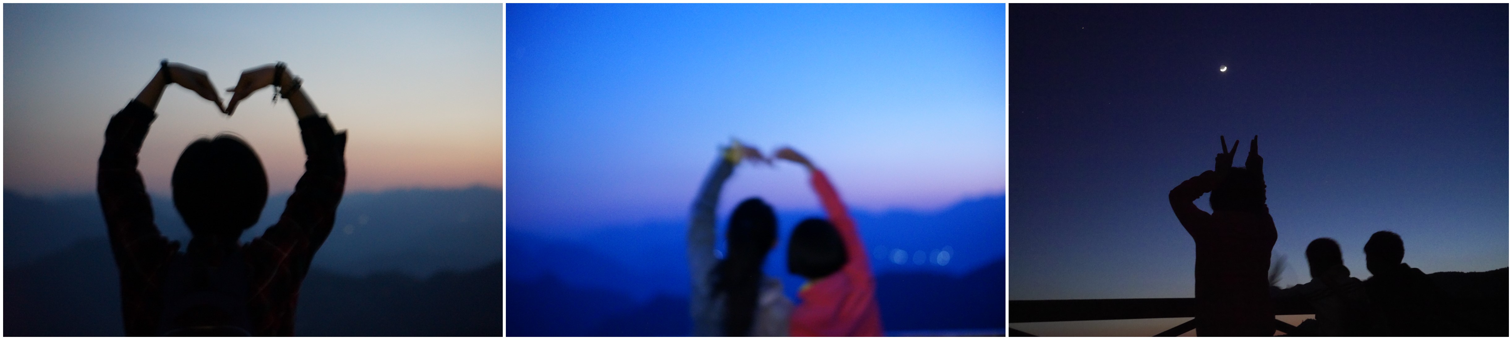 晚上入住南尖岩山顶的农家,因为饭点和日落时间冲突了,等我们吃完饭,太阳已经下山,但幸福指数并未受到影响。