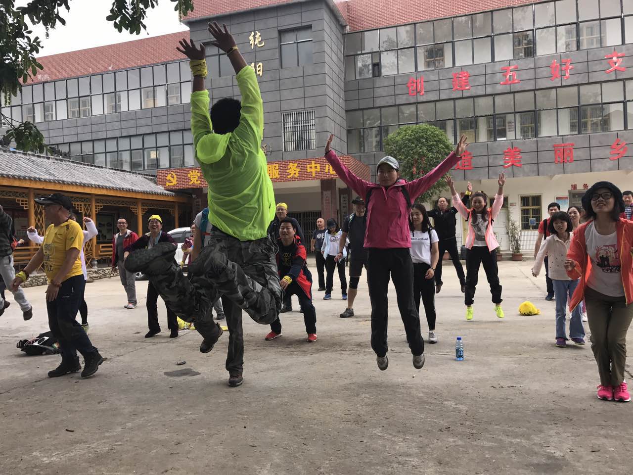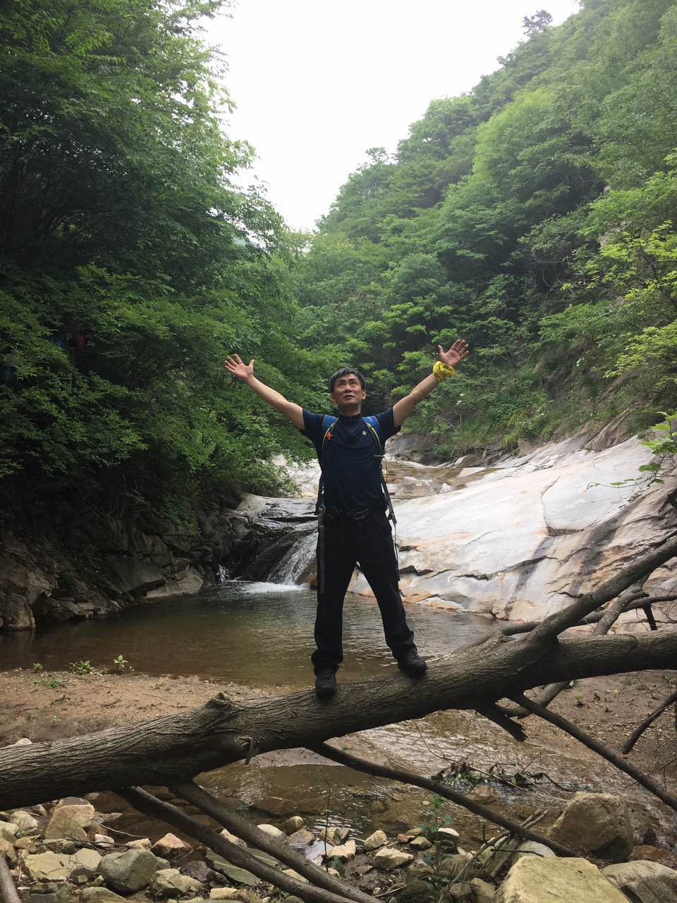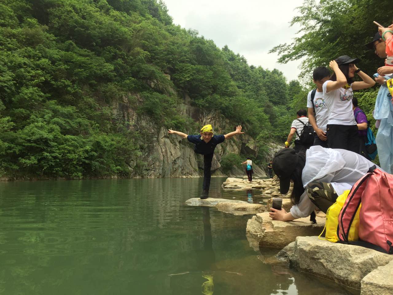 经过接近三个小时的车程,我们终于到达了目的地,纯阳大峡谷的集合处。小马哥先带着大家做一下热身运动,舒展舒展筋骨,同时老ONE的各种凹造型,让我们惊叹不已。