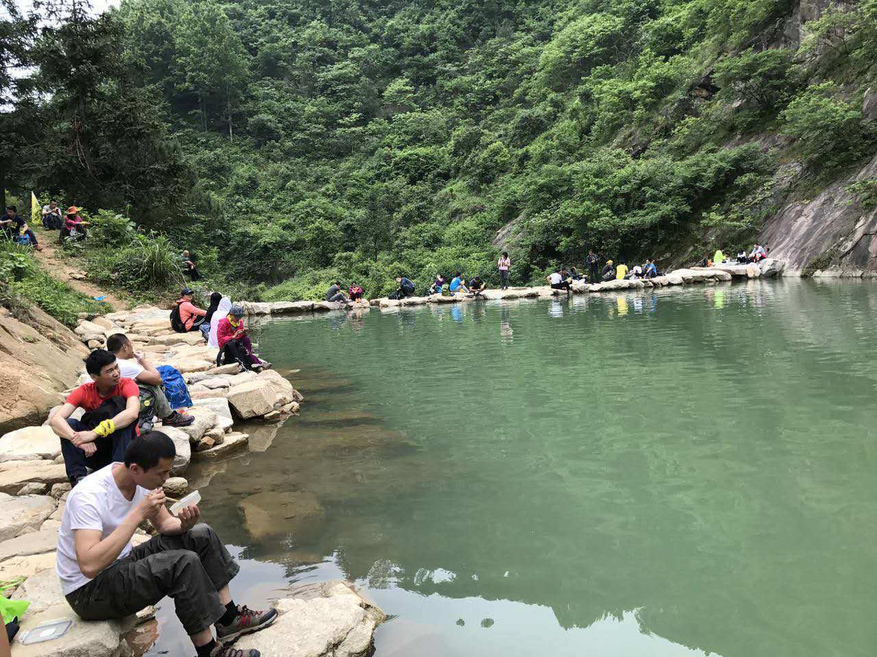 走了差不多1个小时山路,于是我们在峡谷旁露餐