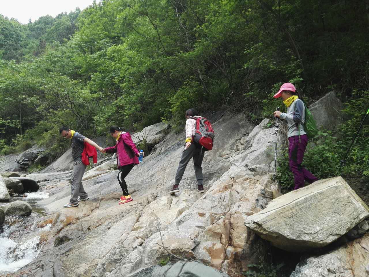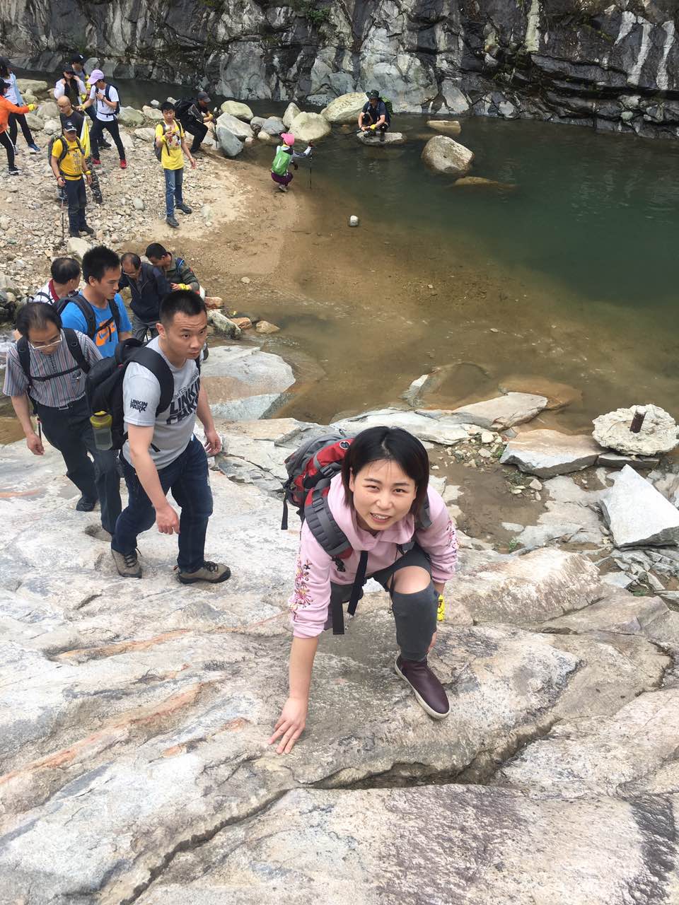 接着我们继续往上爬,中间有几个难过的点,我们都手牵手一起走过去了,为大家的团结协作点一个赞。