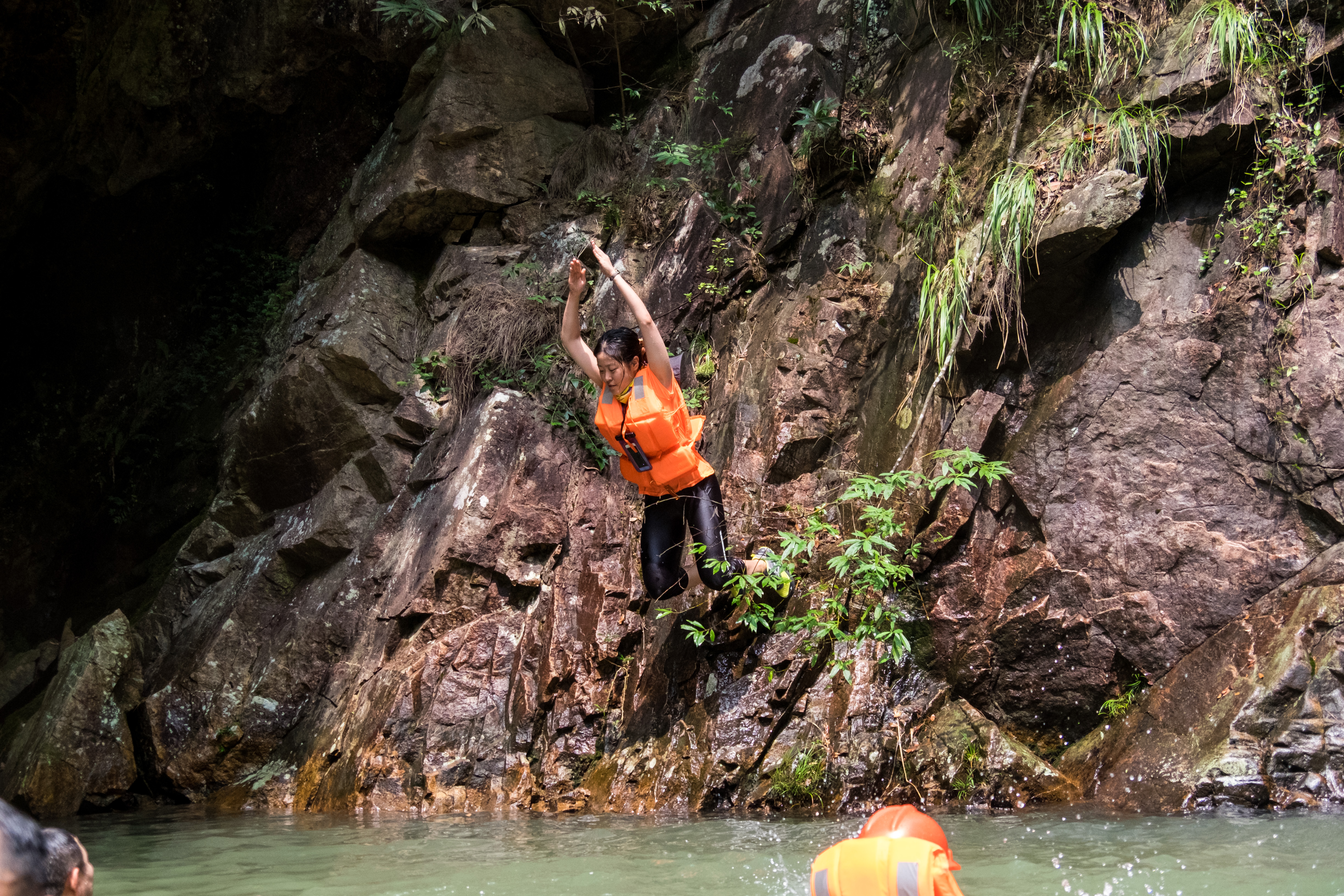 大家顶着烈日来到了位于白鹤镇约18km处的龙穿峡