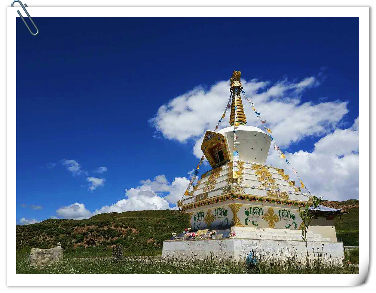 雨后的高原阳光异常明媚。我们顺时针方向围绕着白塔寺行走,看到手持转经筒虔诚的默念六字真言的藏民在转塔。据说在早些年代,藏民基本不识字,所以就把经文装在转经筒里,每转动一圈,就代表诵读了一遍经文,一遍遍的旋转也代表他们反复的诵读。