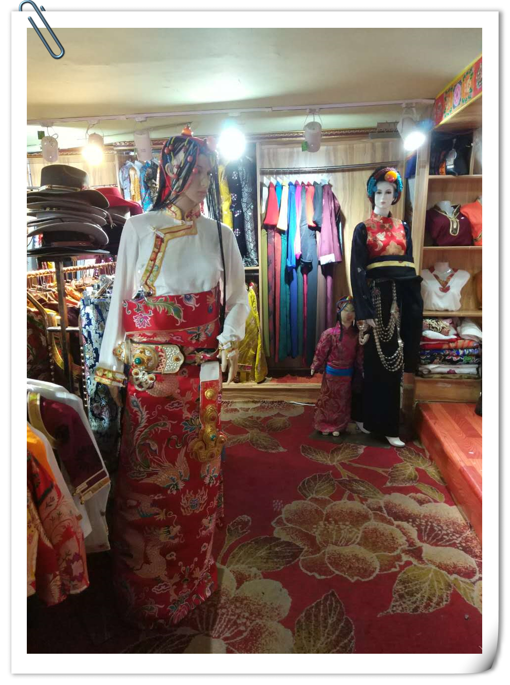 很多藏族人不再穿他们的民族服饰,可能汉族的服装更方便一些吧。然而我对民族服饰却欢喜的很。经过一家藏族服装店,进去后一眼就相中黑白两套服装。然后店主用不太流利的普通话告诉我,这个你穿不了的,这个很复杂的,腰带很难弄的,像你们平时不穿藏族服装的很麻烦。好吧,我是满心欢喜,但要带着这么一套服装去攀登雀儿山,多少也有些疯狂。见过即是拥有,我安慰自己道。