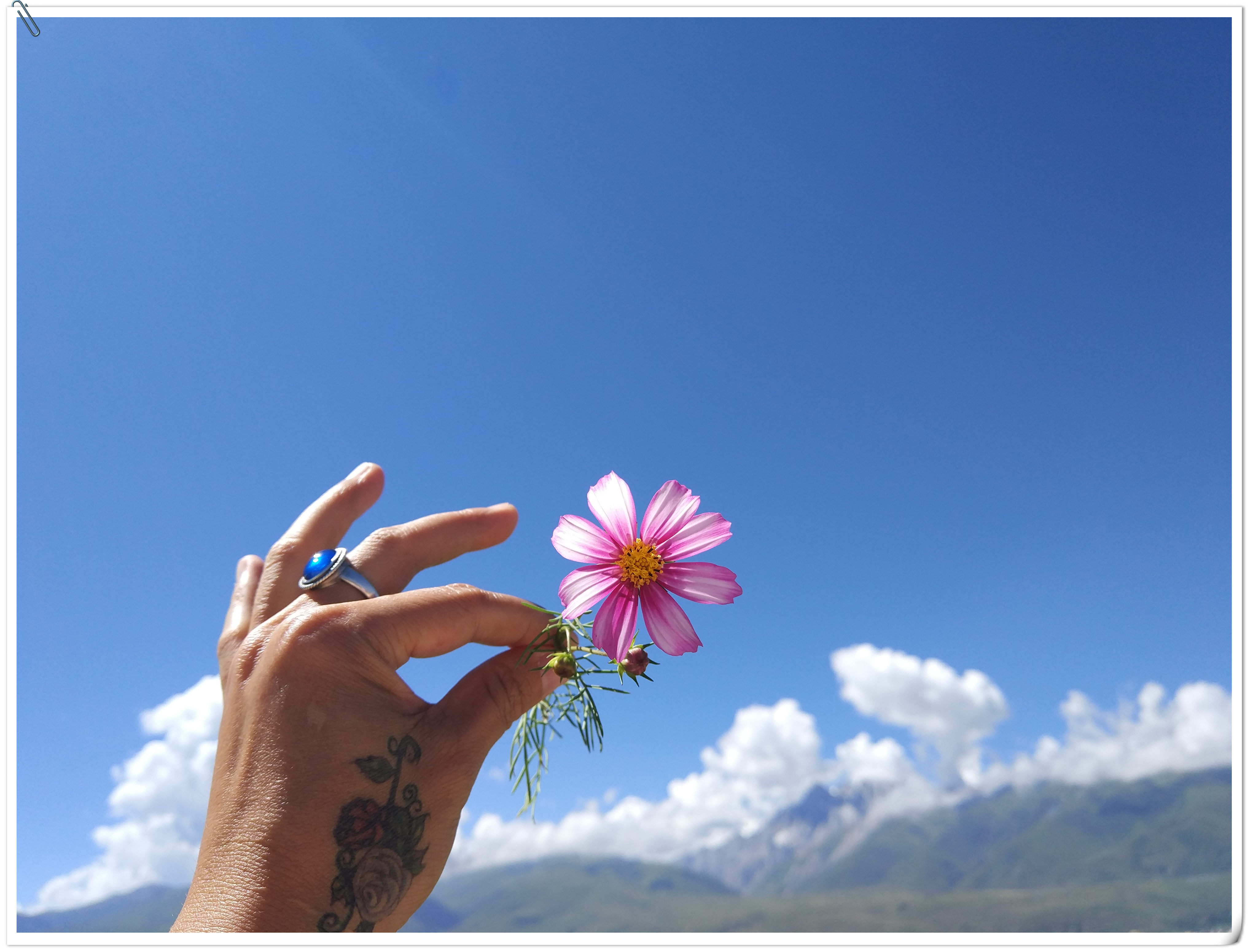 玛尼石堆起高高的希望。我放下相机,盘腿坐着,闭上眼睛,把自己放置其中。感受着时光在脚下静静地流淌;感受炙热的阳光照在身上,耳朵里回响着各种鸟儿的欢叫,凉风吹过脸颊伴随着野花的清香。