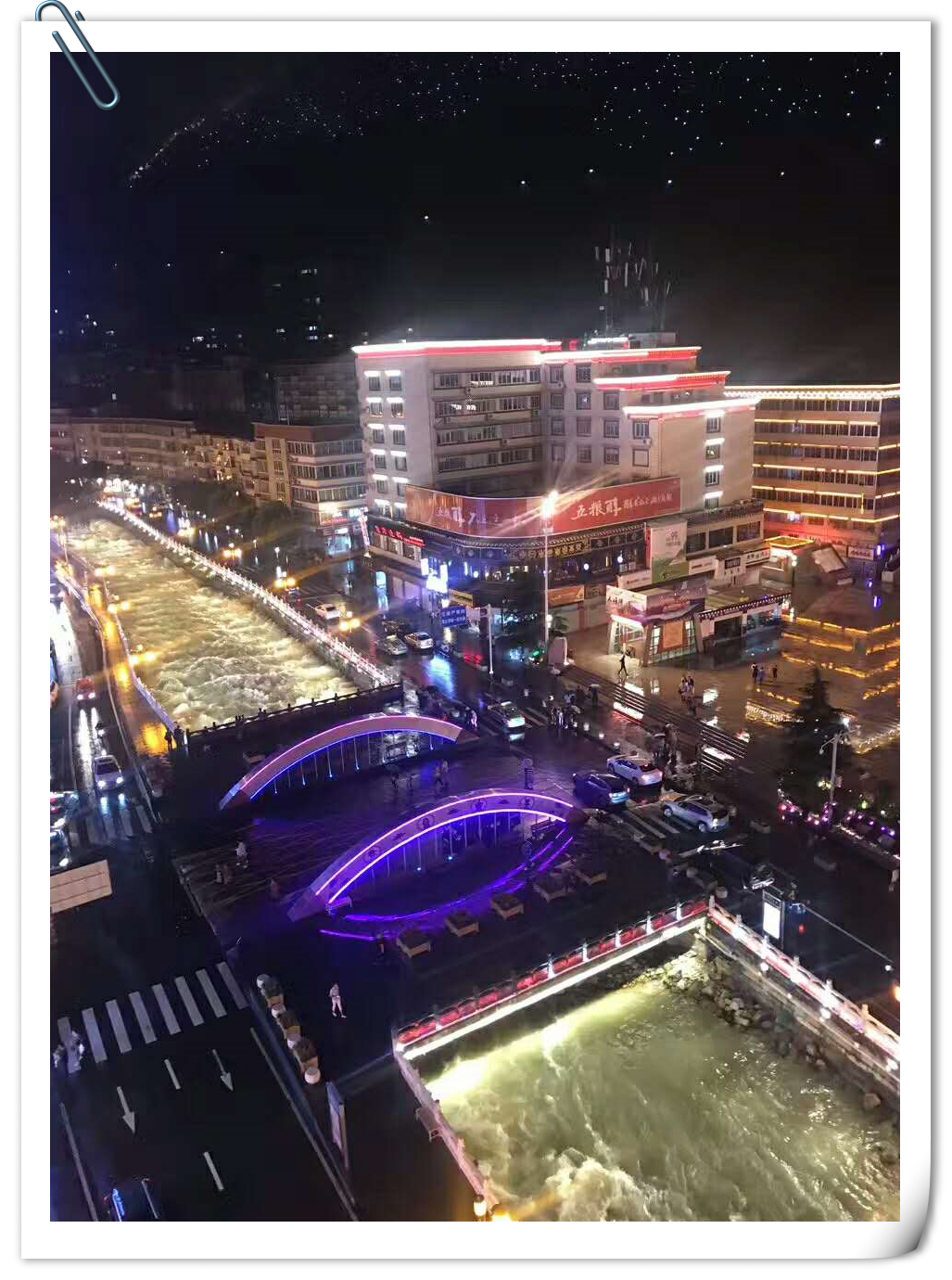 沿街走啊走,想找一家火锅店解解馋。无奈,这里的牛杂火锅都是要一斤起烫,我一个人是无能为力的,所以作罢。最后找了一家冒菜店,点了自己喜欢的土豆等。一直觉得火锅,冒菜,麻辣烫都是差不多的东西。饭后继续沿着当初跟眼神一起逛的那条街走,又经过了那家陪她一起洗头的理发店,我拍了一张照片发给她看。当时康定全程停电,酒店没有热水,所以我陪她去理发店洗头发。这次,康定全城灯火通明,霓虹闪烁,有独具特色的藏族广场舞。