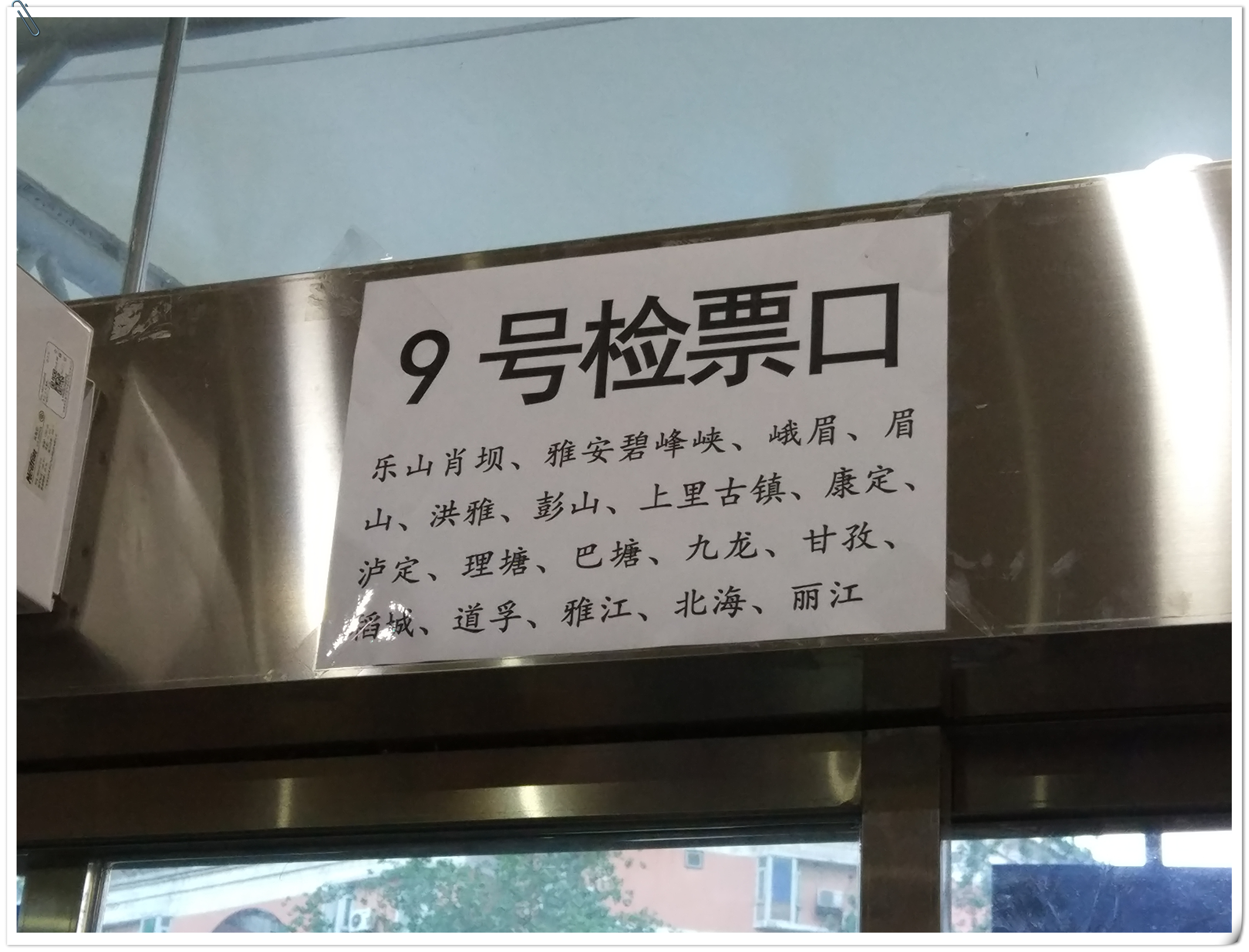 一碗三鲜刀削面过后,即将前往康定。夜里的辗转反侧,旅途的舟车劳顿,都是旅程的重要过程。10点钟的班车,前面的队友告知需要提前进站,然后把自己的大件行李放在行李箱。检票进站,我找到开往甘孜的车子,试着询问是否可以把我的包带上车,因为到了康定需要换厚一点的衣服。师傅说可以,估计他们心里知道有空位,有地方给我放置。我把大包扛上车,一直放到座位最后一排。然后赶忙下车,车子并未发动,没有通风,车上的味道很重,我对气味特别敏感,这味道让我感到眩晕。
