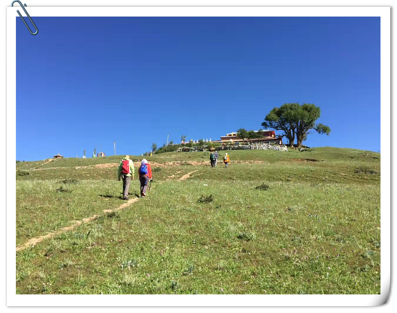 D5(7-30)早上闹钟还没响,我就醒来,起身先掀开窗帘看看外面的天空,多云。我直接穿好衣服洗漱完毕下了楼。早餐厅还一个人都没有。今天开始,一起攀登的伙伴陆续抵达,出去徒步拉练都有小伙伴同行,这是件愉快的事。餐后与阿甘跟贾先森一起出发去对面山坡上的寺庙。