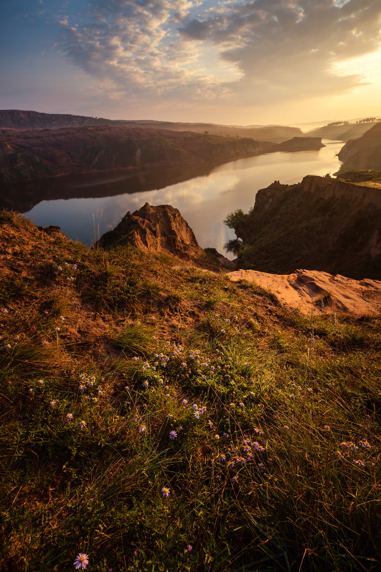 乾坤湾,位于山西省永和县,和陕西省延川县城南部53公里接壤处。黄河在流经永和县河会里村、后山里村和陕西延川县土岗乡大程、小程村和伏义河村一带时,形成了一个“S”型大转弯,形成了一个神秘的造型 乾坤湾是一幅天然太极图,是黄河古道秦晋峡谷上一大天然景观,也是山西永和最亮丽最壮观的一个风景点。在乾坤亭内极目眺望, 形似太极图的乾坤湾尽收眼底。弯道弧度320度以上, 堪称天下黄河第一湾 。它形如太极阴阳鱼 ,环抱郁郁葱葱的青山。山上住着人家 ,炊烟袅袅。岸边的草滩上, 一 群黄牛正在河边饮水。乾坤湾不仅壮美 ,还是一幅黄土高原的生活图画 。