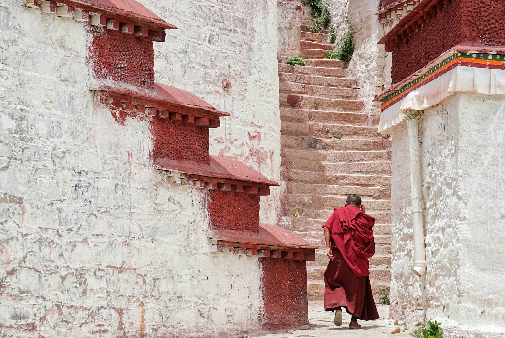 甘丹寺位于拉萨达孜县境内拉萨河南岸海拔3800米的旺波日山上,寺院全称“甘丹朗杰林”,拉萨三大寺之一。甘丹是藏语音译,其意为“兜率天”。格鲁派六大寺院之首,由格鲁派创始人宗喀巴大师亲自筹建,是格鲁教派的祖寺。甘丹寺几乎占据整个半山,颇为壮观。寺内的壁画和雕塑都很精美,保存的文物也不少。除了乾隆的盔甲外,还有许多制作精美的丝织唐卡,其中很多是明代早期的江苏刺绣——这是宗喀巴的弟子“释迦也失”去南京受封以后,从内地带回拉萨献给甘丹寺的。