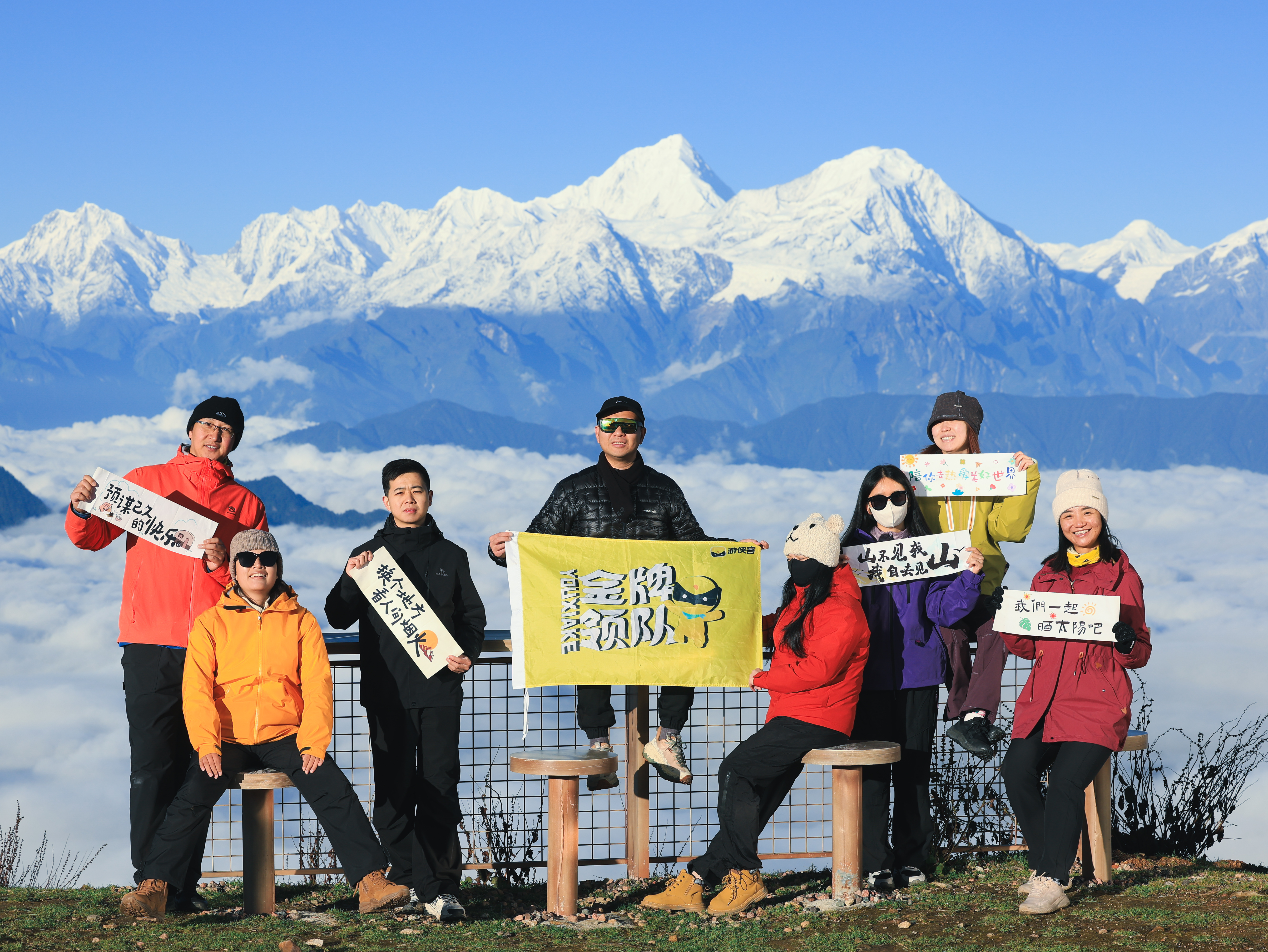 10-次年5月有比较大几率看到云海、日出、日照金山、佛光、甚至雪景(12月初开始)。云海牛背山的云海浓密而均匀,而且不像其他地方的云海是平平的铺展开来。牛背山的云海仿佛大河涛涛,从天而降,在山脚下突遇断层,又如同瀑布般倾泻而下。滂沱的气势丝毫不逊于世界上所有知名的瀑布。日出牛背山的日出诞于黑暗,染于云海和星空的暖色地平线。早晨5点的孕育,犹如生命的分娩!透过镜头看眼前的云海,初升的太阳给这片云海增添了更多的绚烂和辉煌,那些随着翻滚的云海起伏的山峦更是为这片美景增添了几分神韵。连专业的相机和摄影师都无法拍下她的壮阔。除非你亲眼所见·····贡嘎雪山蜀山之王贡嘎雪山矗立于牛背山的正西最高点,站在牛背山山顶可观赏到蜀山之王的全貌,牛背山可谓是观赏贡嘎神山的最佳观赏地之一。当天气放晴时,贡嘎便会露出它伟岸的身影,运气好还可以拍到壮丽的日照金山。星空站在牛背山山顶观赏满天的繁星,天空似乎触手可及,脚下是云海,背景是雪山,而自己仿佛置身在星河之中。一瓶啤酒,三五好友,共赴牛背山星空的盛宴。360景观在川西,从来没有一个观景台,能在同时欣赏到蜀中绝大多数的名山,直到牛背山出现在我们的目的地名单。贡嘎山、四姑娘山、峨眉山、瓦屋山、大相岭(泥巴山)、夹金山……走上牛背山,这些名山均可尽收眼底。杜鹃花牛背山海拔3600米,从山腰2800海拔的位置开始,直到山顶,集中分布了大量的杜鹃,每年五六月间,满山的粉红色的杜鹃花盛开在云海之上,和雪山云海交相辉映,别样迷人。