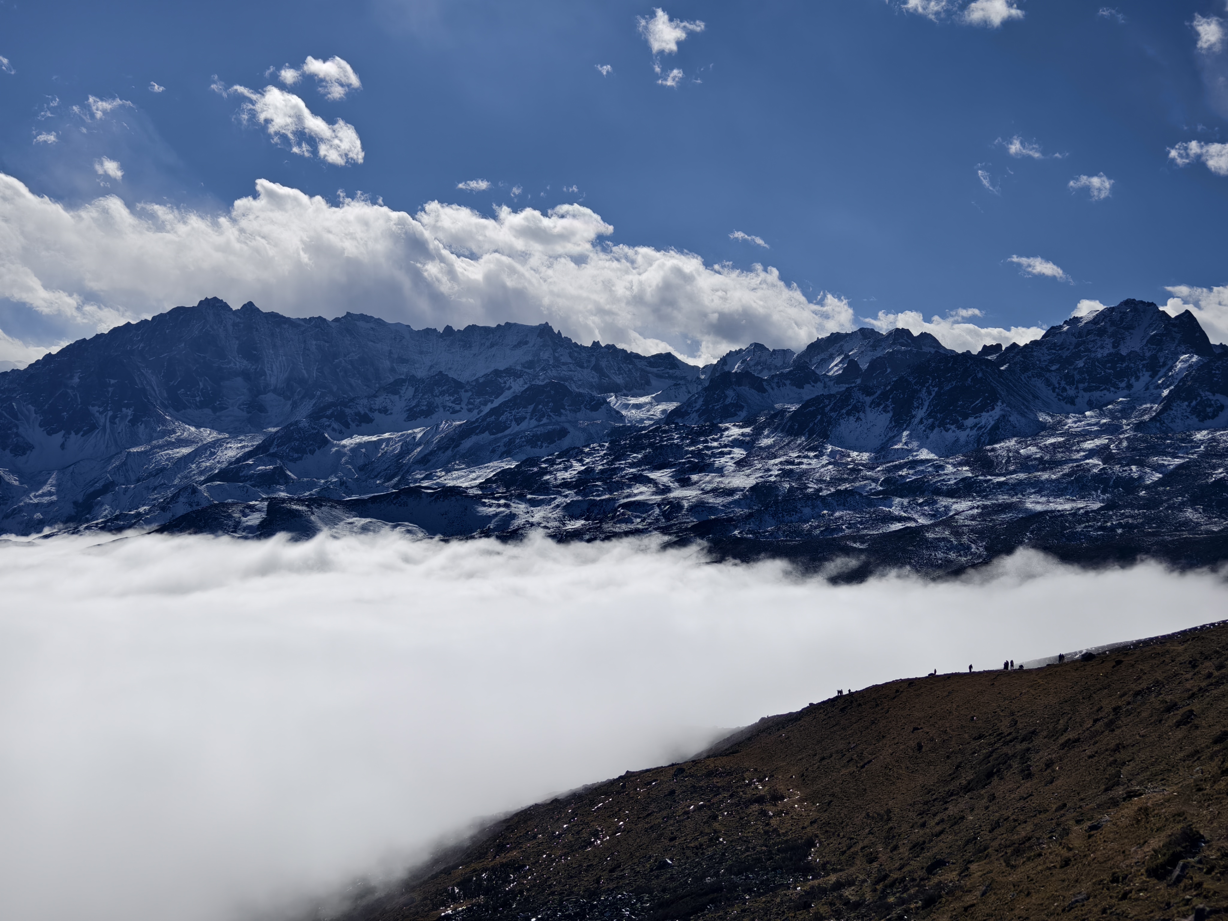 地处甘孜州泸定县冷碛镇黑沟村境内,贡嘎雪山东南侧,邻靠二郎山,与“绝佳摄影圣地”牛背山、四人同山三足鼎立。因山顶向上突出,酷似犁尖,被当地人亲切唤做华尖山,华尖山坐东朝西,海拔3450米,日出、云海、山色、星空……你想要的牛背山绝色风景,这里无所不包。华尖山与牛背山海拔相差无几,且距离贡嘎雪山更近,这里的日出一样的壮观。徒徒步4个小时便可到达山顶,眼前云海一望无际,云雾沿着河谷上升,从两侧的山脉溢出,会形成壮观的云瀑。