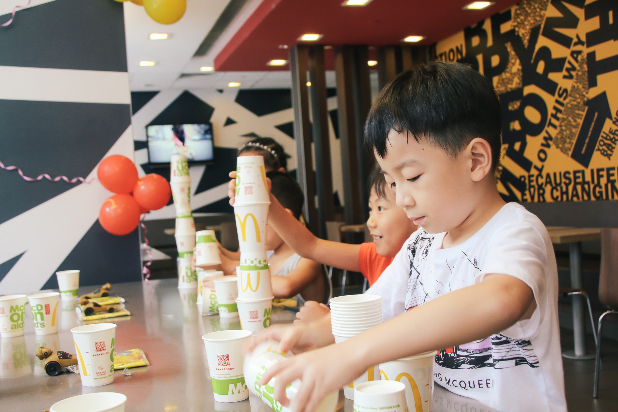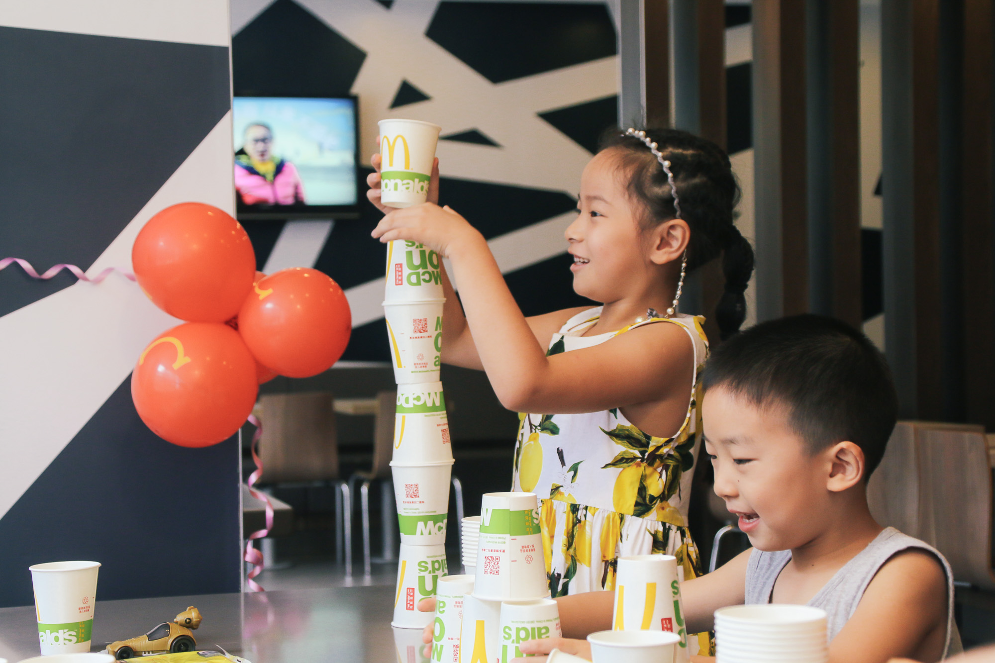 小朋友们到齐签到后,在麦当劳姐姐地组织下开展互(te)动(bie)游(kai)戏(xin)