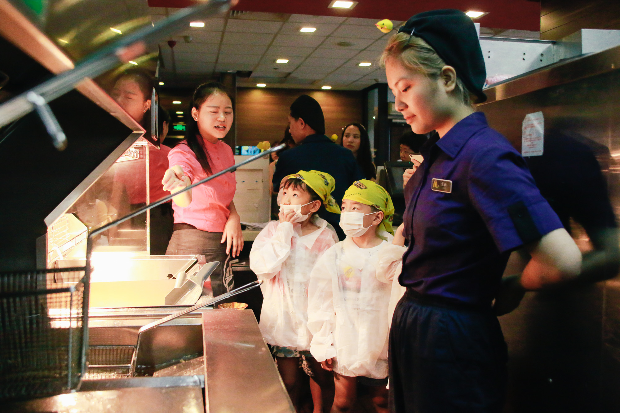 麦麦姐姐:“这是我们做薯条的地方,小朋友小心烫哦”