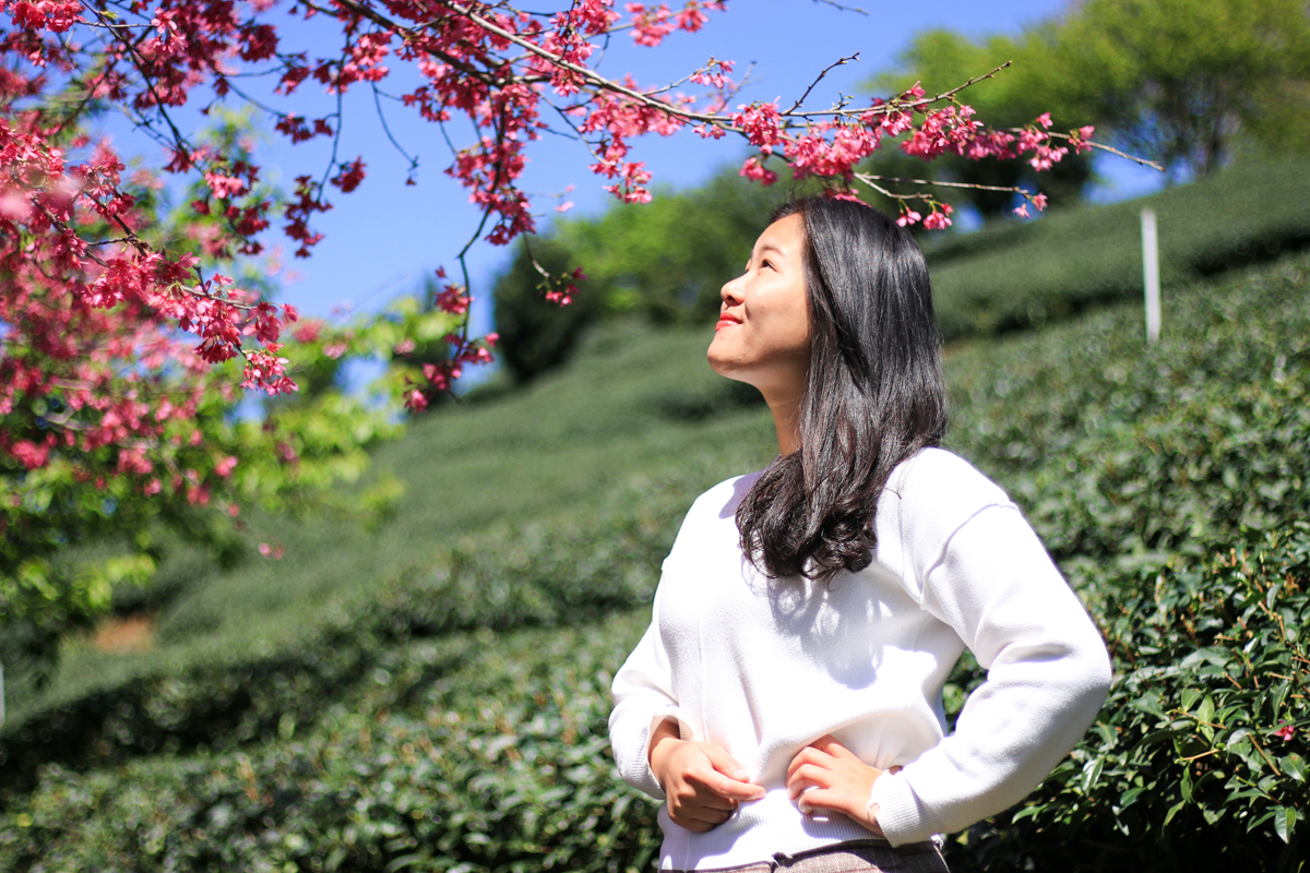 我们一块去玩的小伙伴都觉得,虽然此刻的樱花只剩一枝独秀,可天气好到爆倒也觉得非常美丽。远处高高的蓝天与山脉,近处层层叠叠的茶园与所剩无几的樱花,想象着当那一株株绿色的植物都是粉嫩粉嫩的时候,于是内心暗自决定,明年,正当花季避开人群,一定要再来一次。