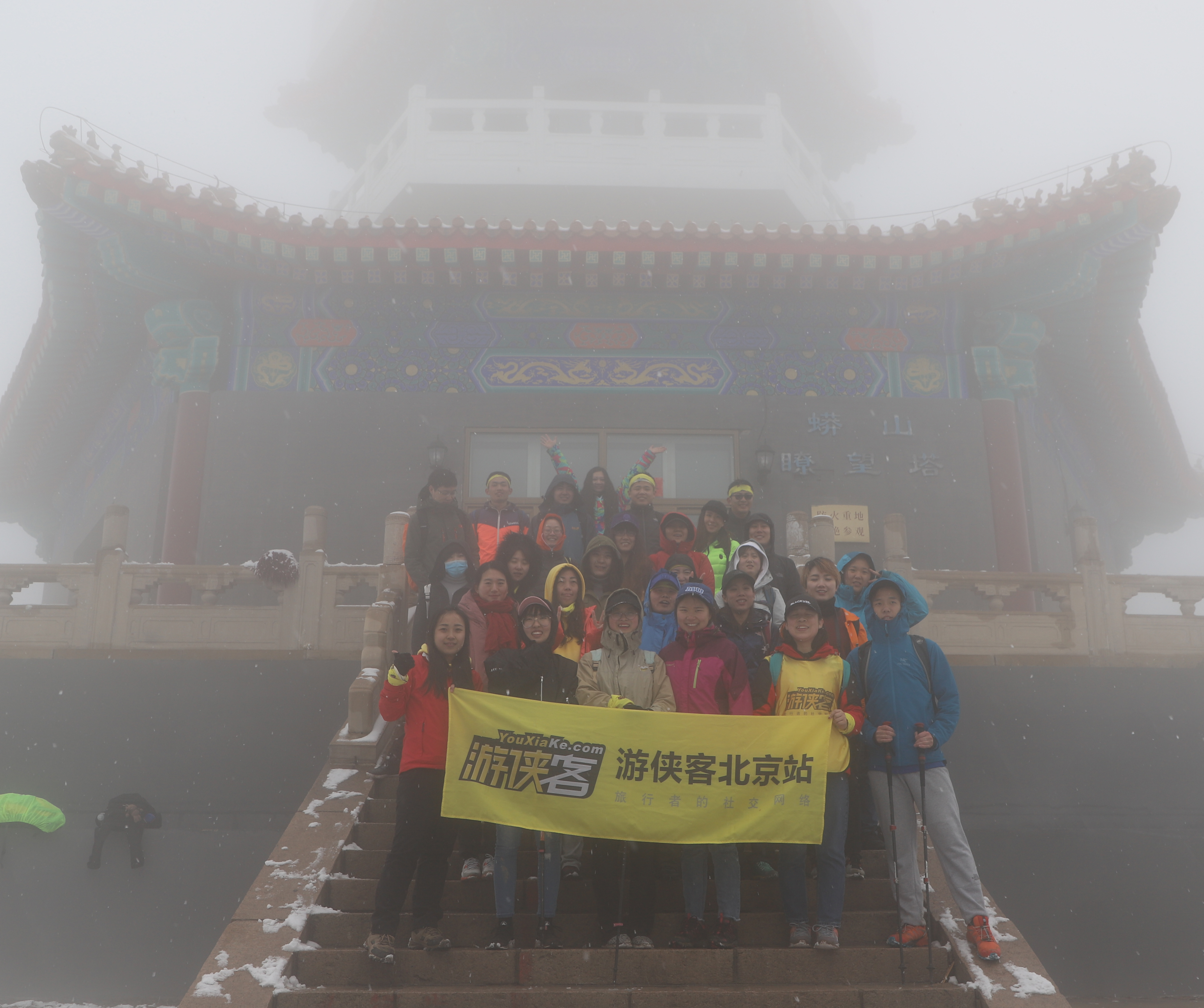 一群人在大雾之中影影绰绰的合影