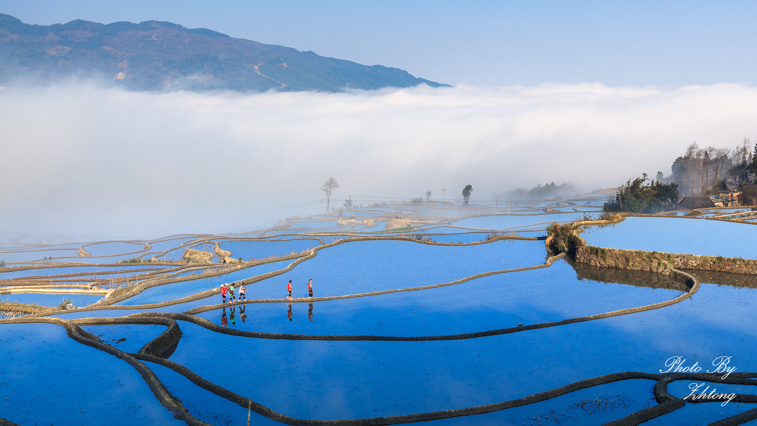 喧嚣散去,我们马不停蹄赶往爱春,拍摄宁静的蓝梯田。在这里,游侠客贴心的为大家聘请了当地哈尼族妇女,在田埂上漫步,这使得平静的蓝梯田有了一丝丝生活的味道。