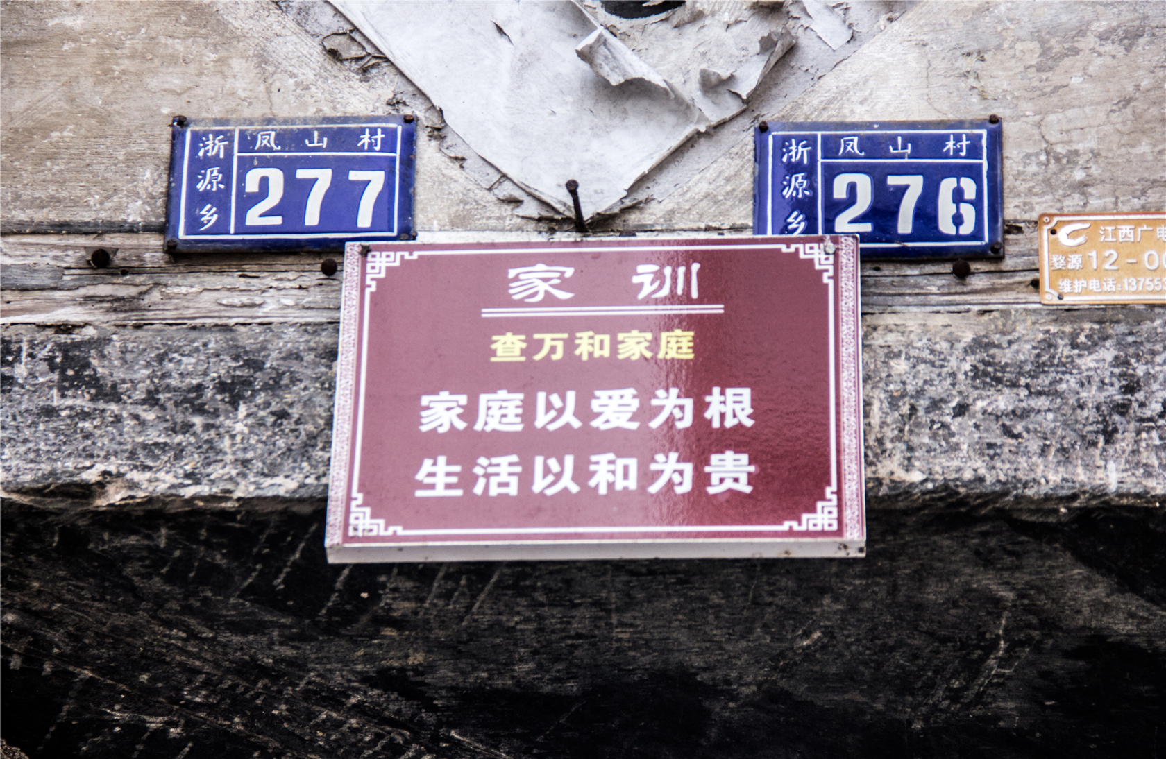 凤山村也是婺源的一座古村落了,千余年的历史,村民大部分为查姓,在村子里穿行而过,可在家家户户的门墙上看到写着“查XX家·家训”的字样。说凤山村为一代大师金庸的祖籍地,这是有考证的:据称,金庸为查氏39世,他的祖上17世的查瑜便是从婺源凤山村迁到海宁的,虽然历史悠久,但千丝万缕的联系总是有的。
