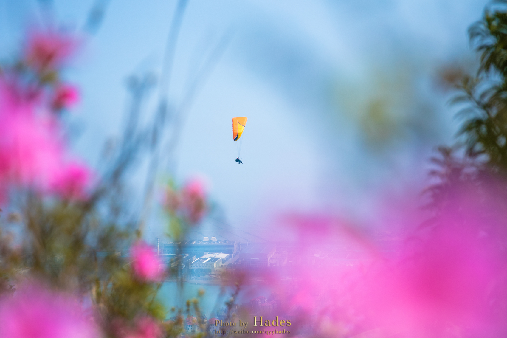 这里是伏龙山滑翔伞基地。滑翔伞基地建在一处山坡之上。起飞平台是平坦的草地,穿戴好飞行装备,按照教练的指引,用力助跑冲向山崖便可以纵身飞翔!山花烂漫,田野新绿,从高空俯瞰水乡景色别具一番风味.