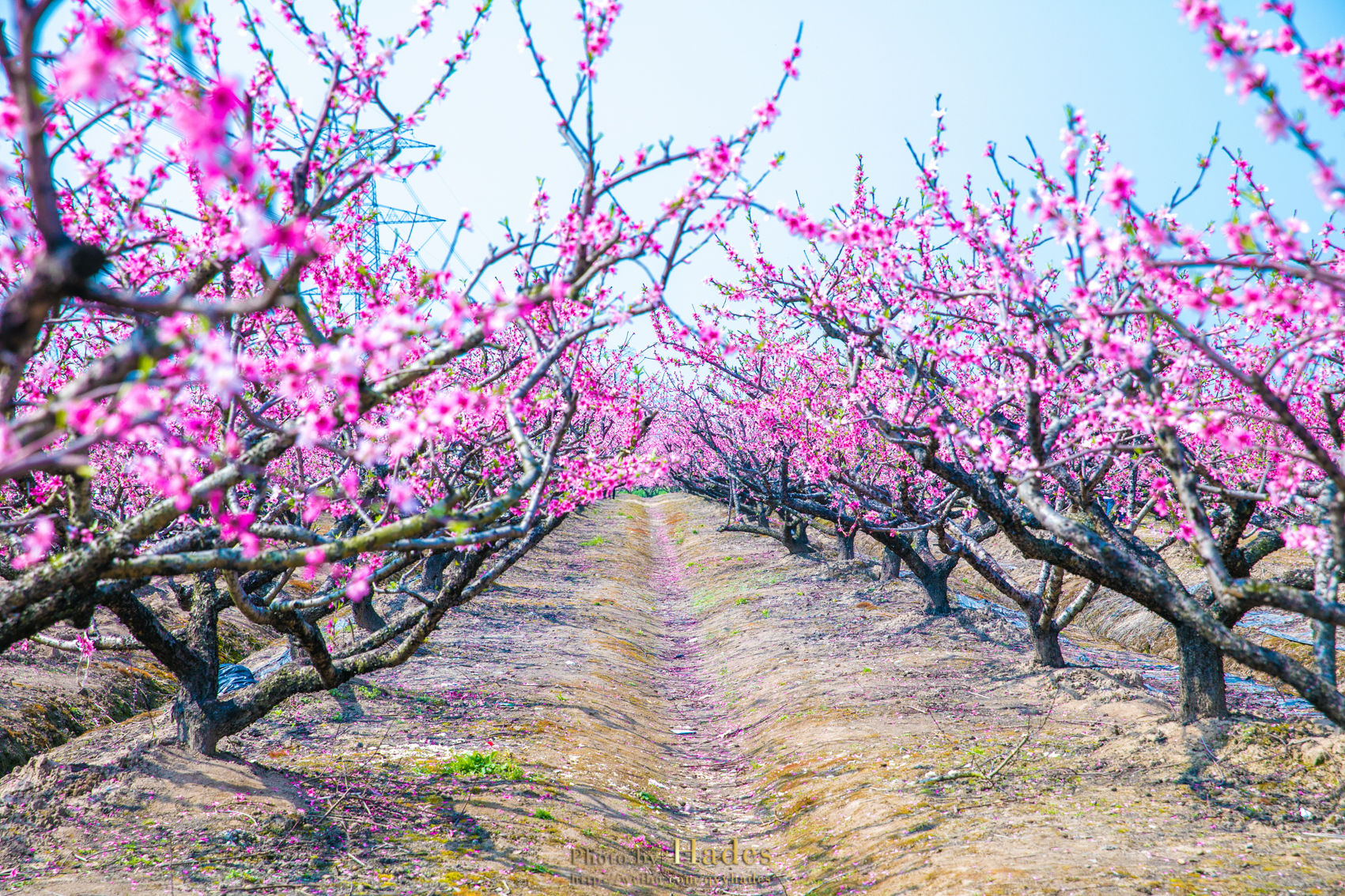 桃园中的树与树的间距很大,甚至可以在两排树间散步慢走。这样的树间距非常适合游客游览和拍照。站在这花海之中,张张都是粉嫩的色彩。