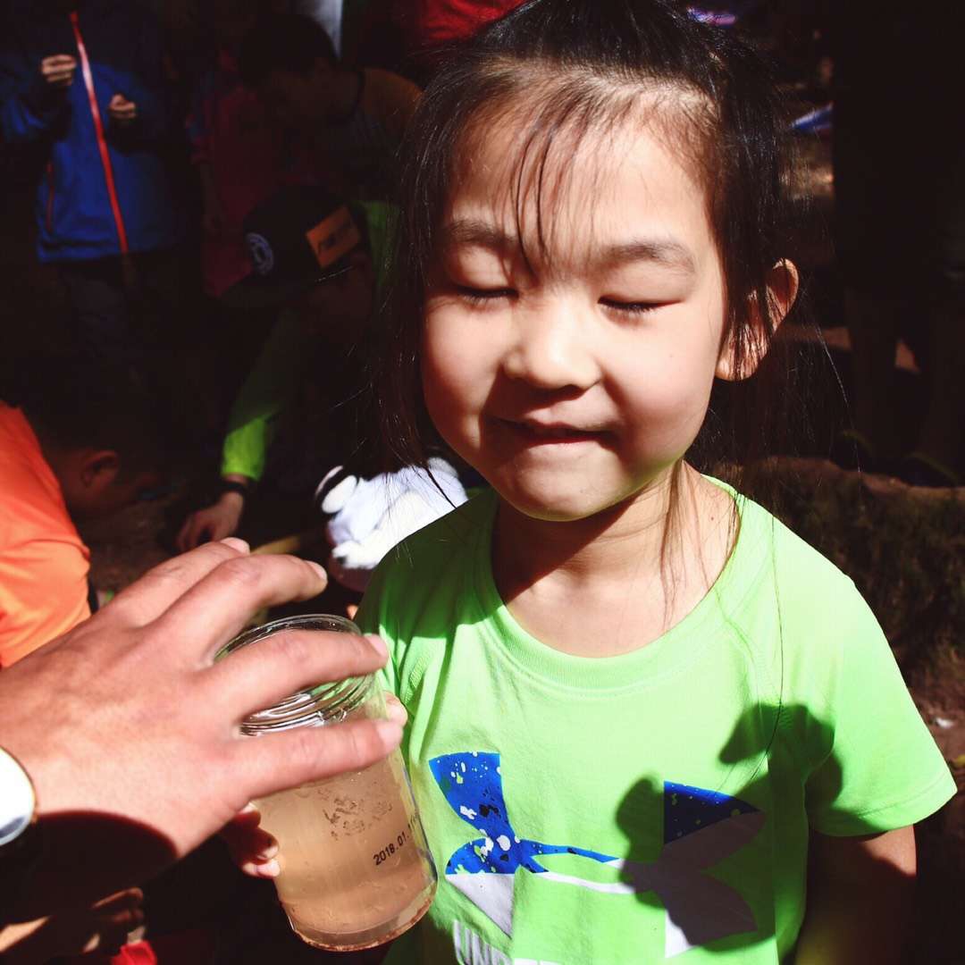 遇到小溪,户外领队告诉我们如何抓野生的小螃蟹和小鱼,我们的小朋友们都非常有爱,抓到了小鱼和小螃蟹之后,都把它们放回到小溪里。