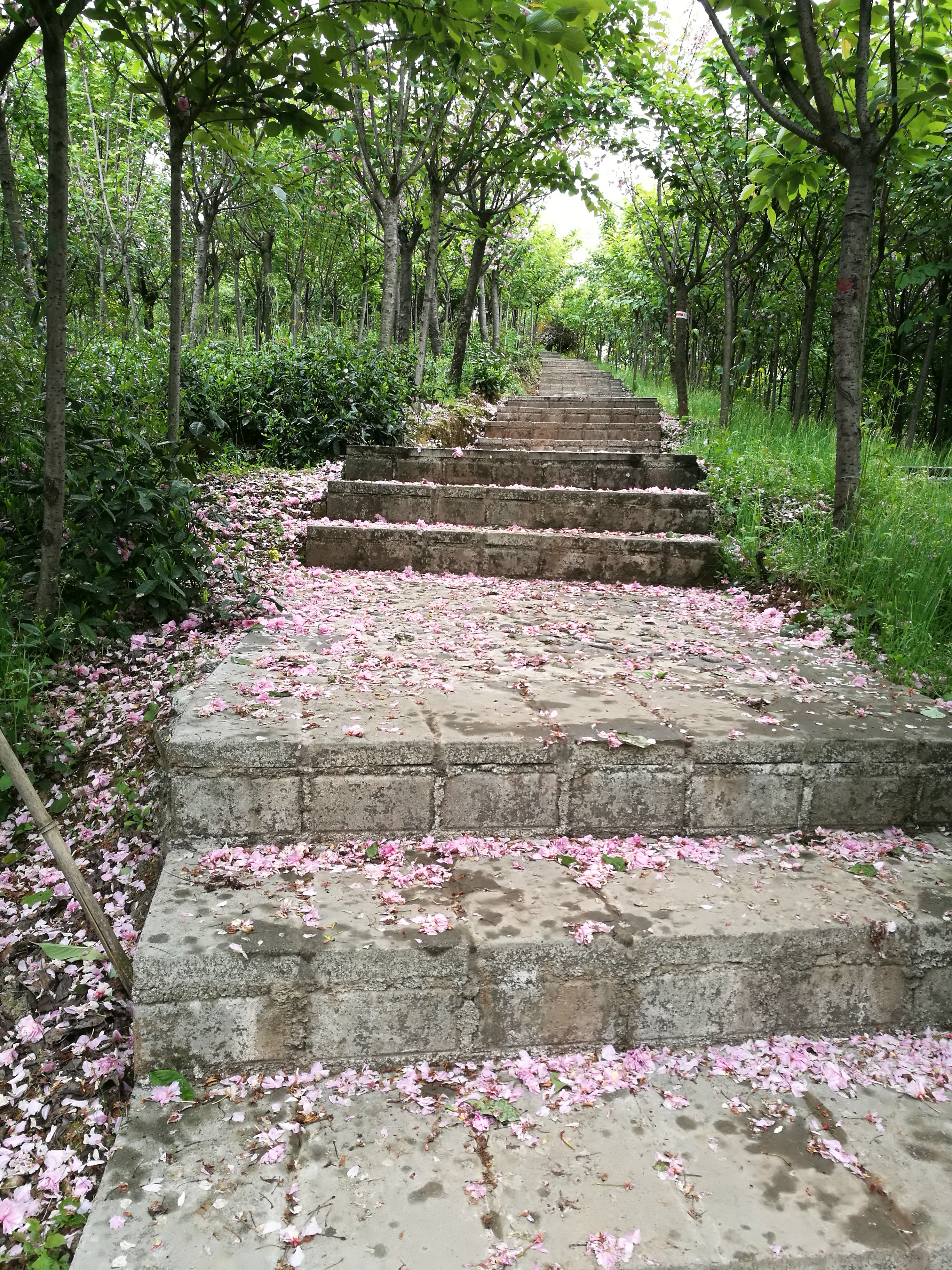 一路上看到的都是这种落樱满地,樱花层层叠叠的落在地上,我们在花毯上前行。
