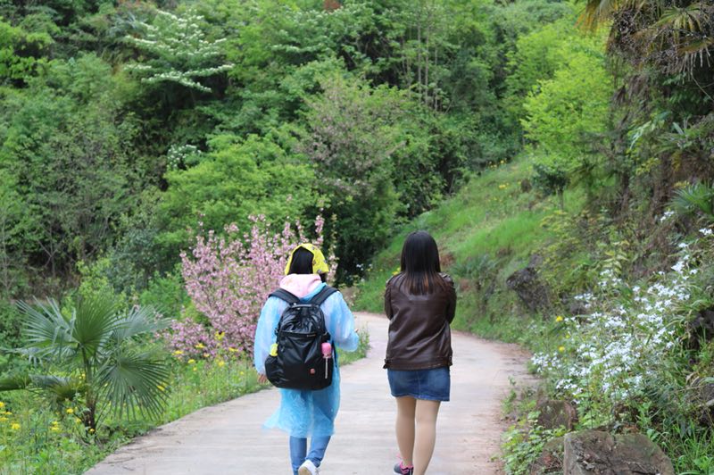 一路上还是断断续续的有春雨飘落,春天的雨是柔和的,只见春雨时而直线滑落,时而随风飘洒,留下如烟、如雾、如纱、如丝的倩影,路面也变得湿滑起来,这时候小伙伴互帮互助,当你伸出手的那一刻,我们已是朋友。