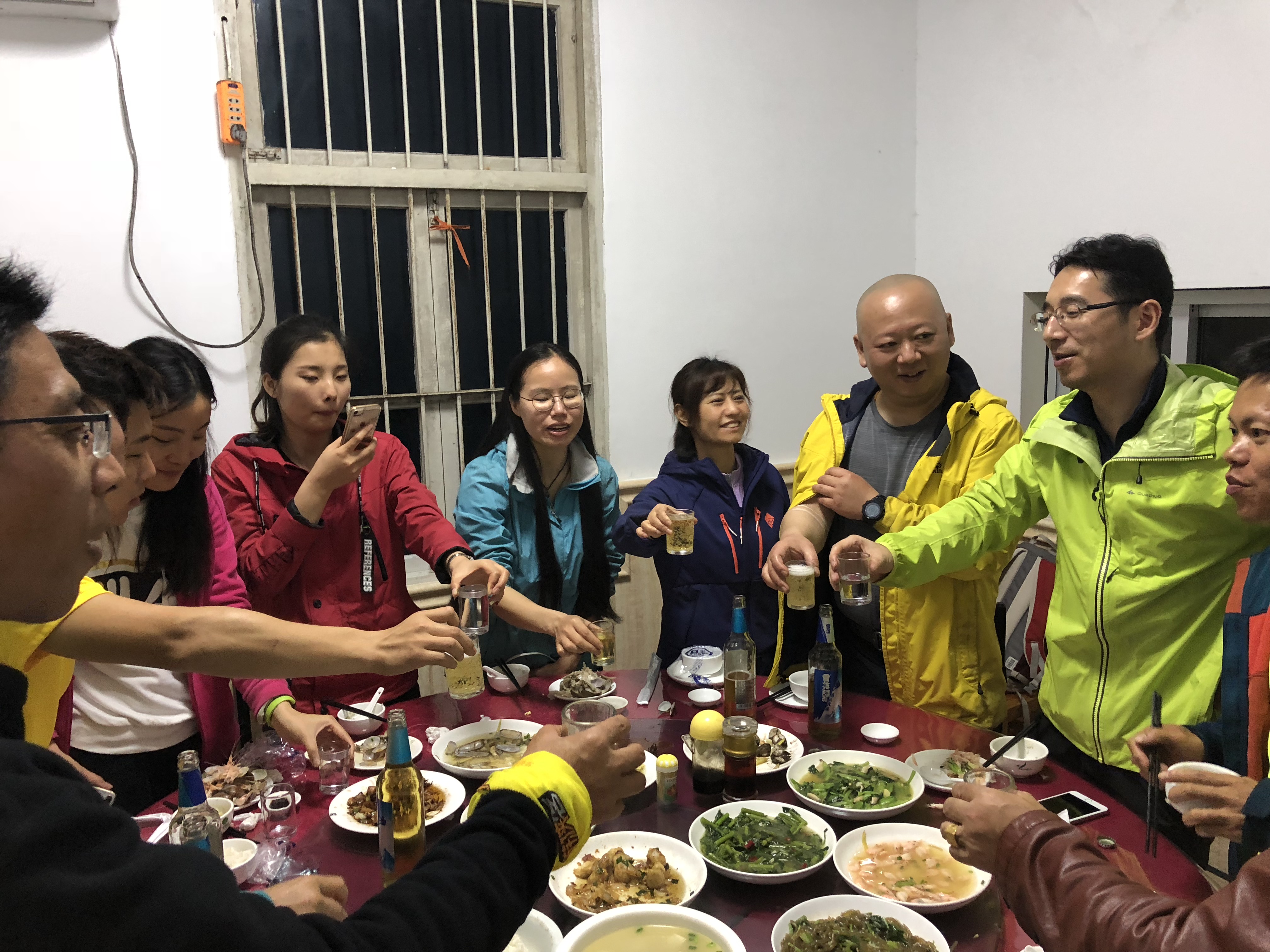 晚上7点左右,周围一片乌漆嘛黑。新加坡大哥的头灯和手电,给了我们黑暗中的一丝光明。原本就有难度的山路,在伸手不见五指的黑夜,是难上加难呀。脚不敢轻易往前挪。此时大家共同宗旨:安全出山。妹妹们用手机的手电功能为前后的伙伴照路前行。为了缓解紧张的气氛,新加坡大哥乐观地开玩笑:“灯光、灯光,你别走------”。靠着这一束救命的光,我们顺利地出山了。