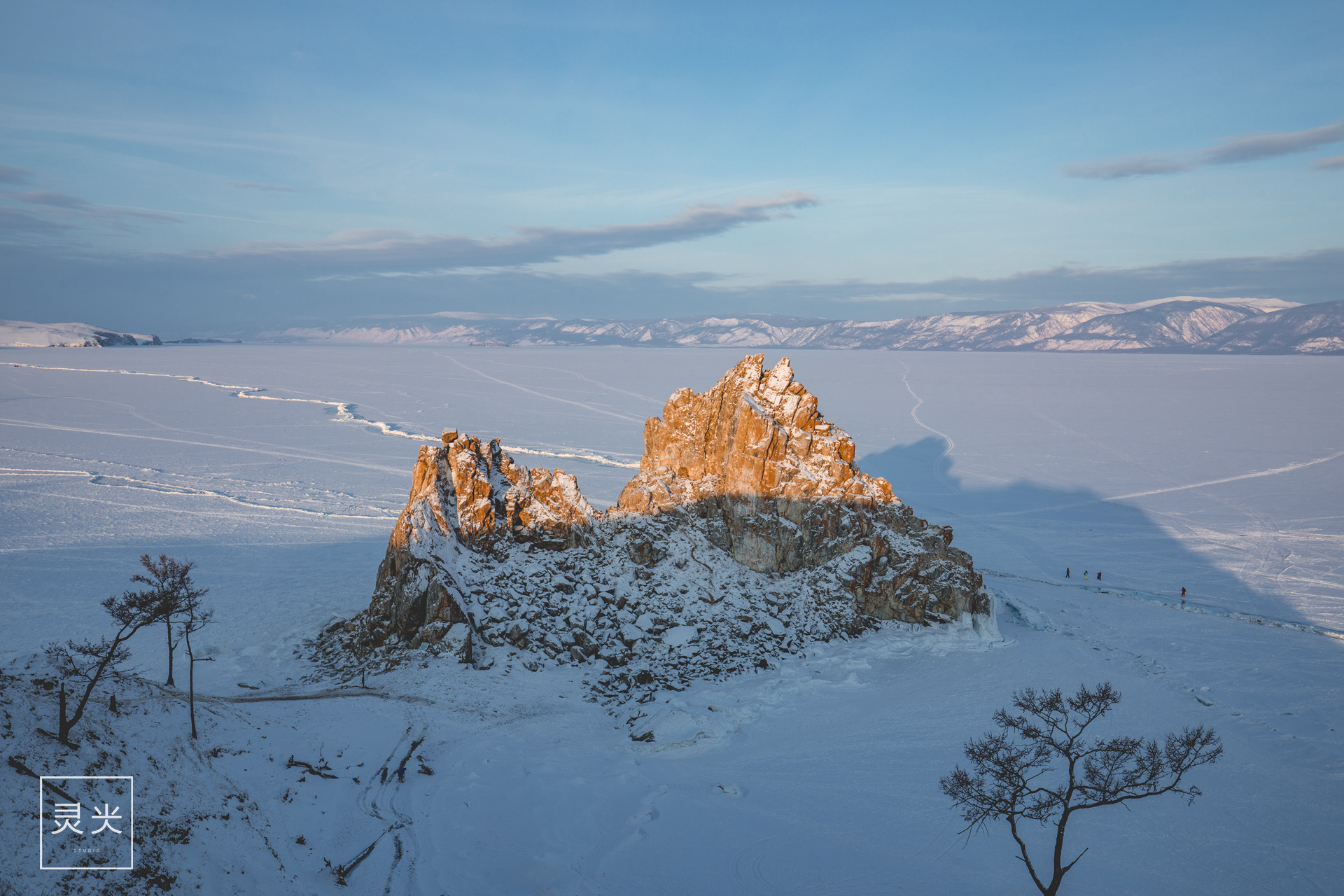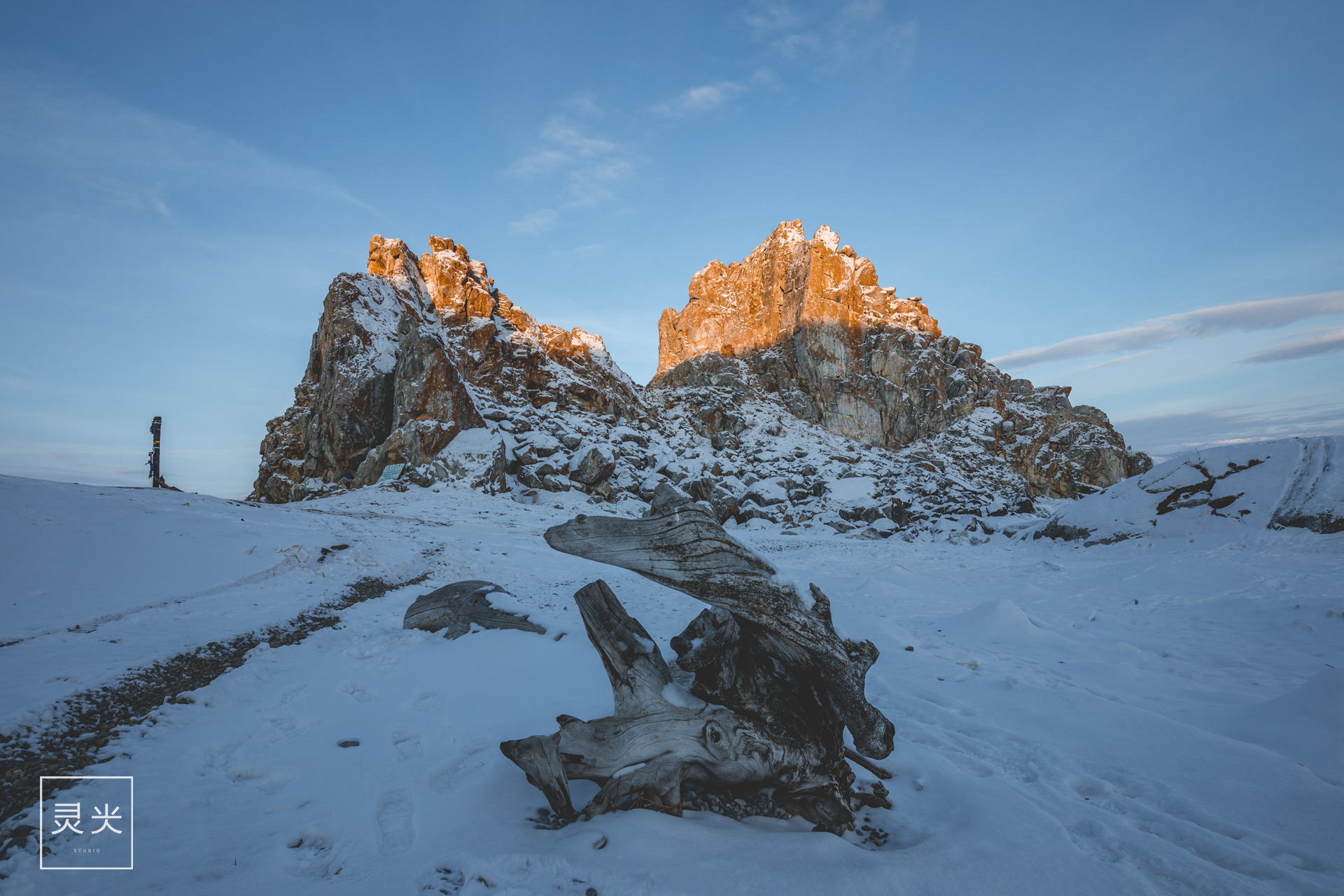 萨满岩石是一块突出在贝加尔湖边的巨大岩石,是萨满信仰中最重要的圣地之一。岩石旁边有一棵萨满树,上面缠满了五颜六色的经幡,寄托着人们美好的心愿。天晴的时候景色非常干净,非常看日出。