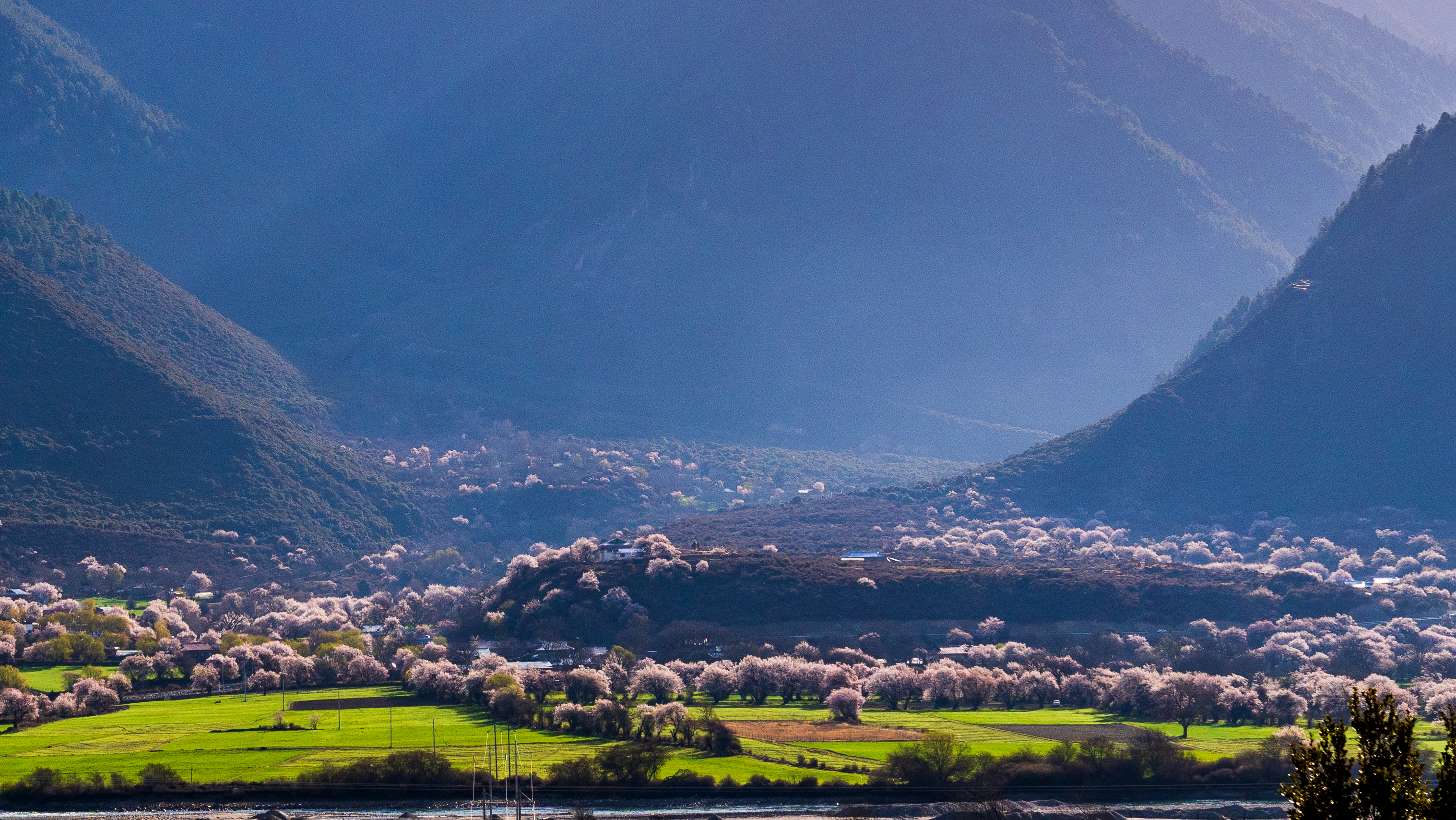 索松村的桃花,相对之前波密桃花沟,起势更加恢弘,站在观景台高处,峡谷内的雅鲁藏布江,桃林,房屋以及远处的雪山互相辉映,世外桃源既是这里了。