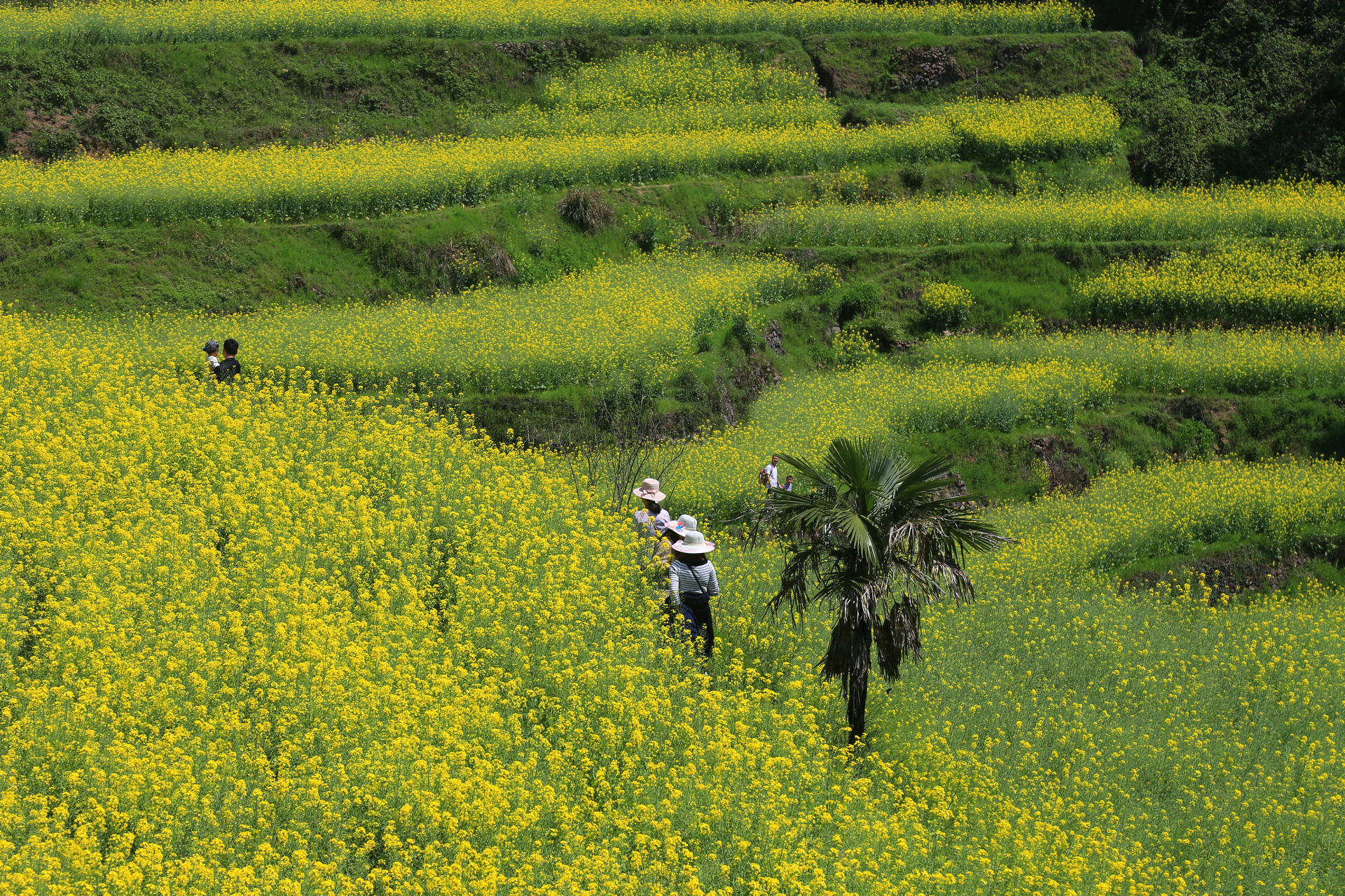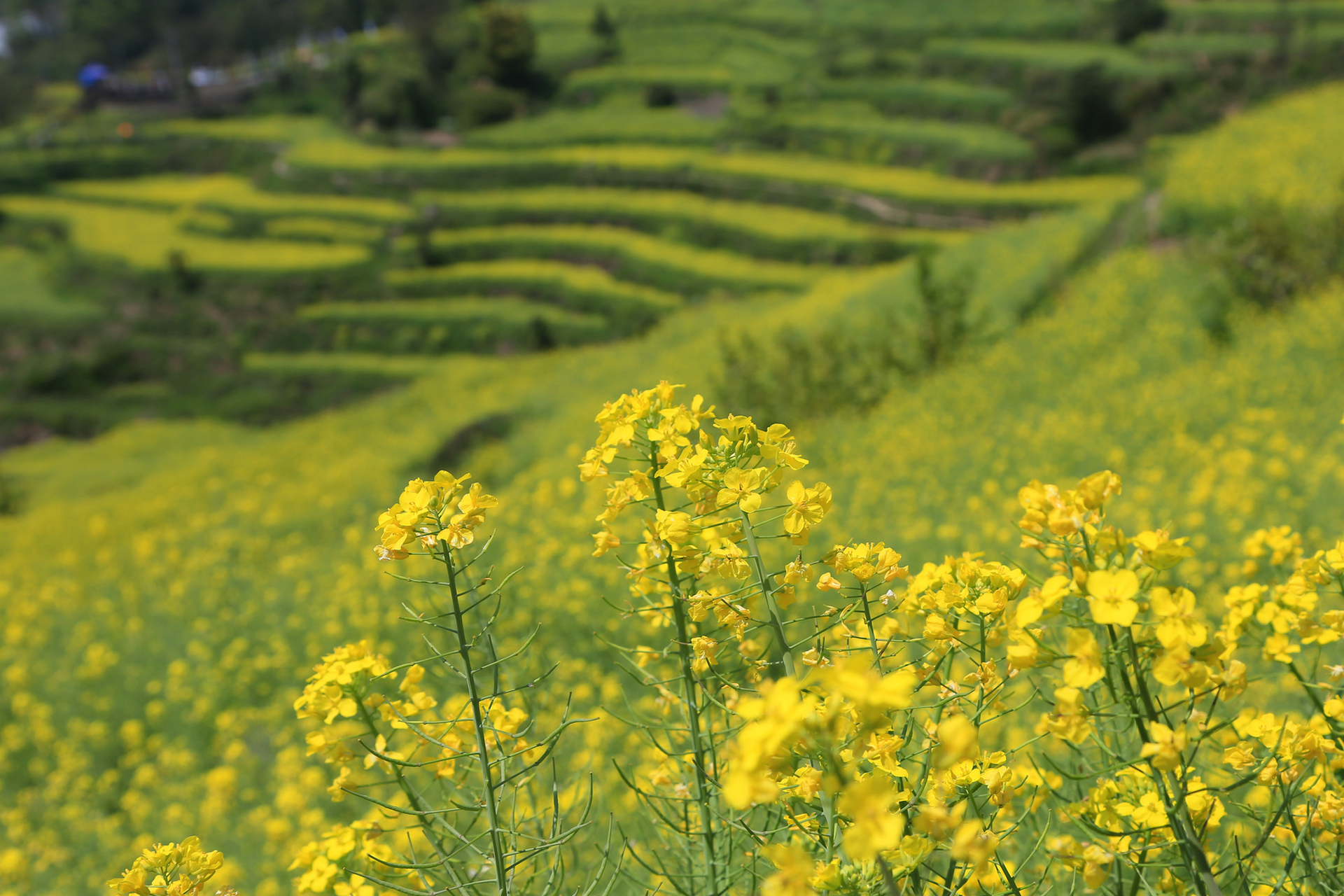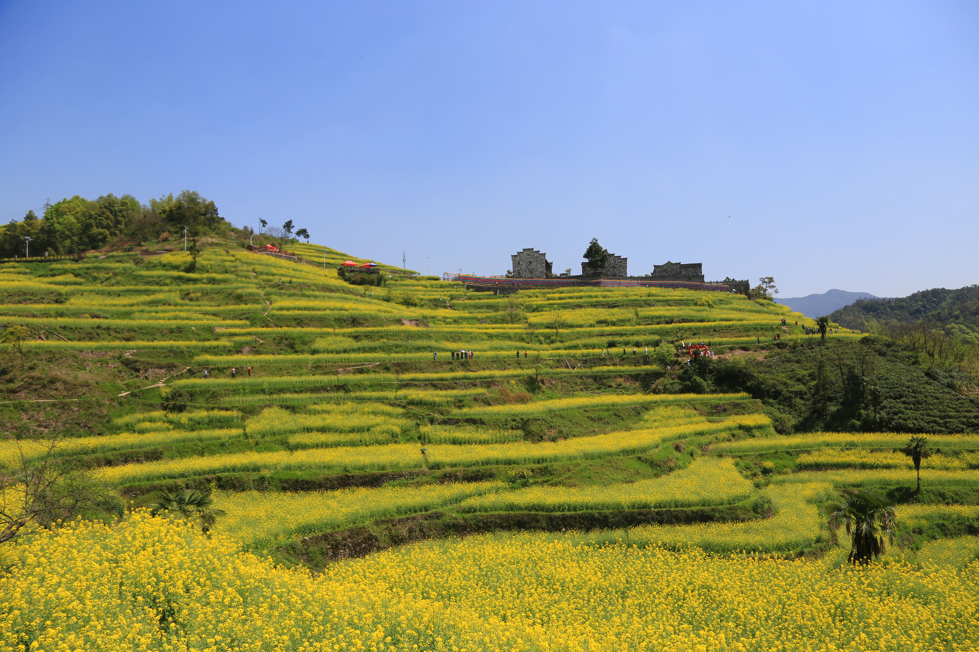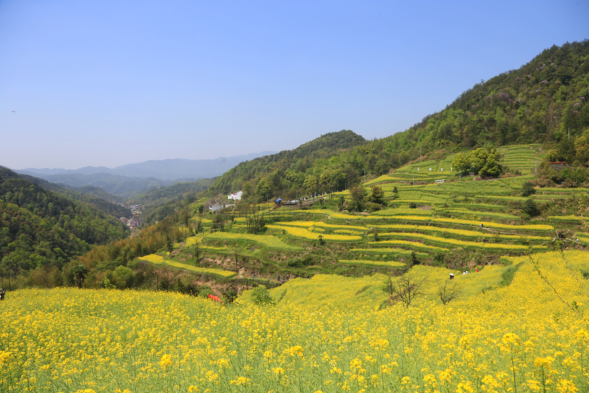 在游客中心停车后,往上走一点点路就可以看到梯田花海,周末大部分的车子都是停在路边,从游客中心到宋宅的一段路是单向通行,而花田就在这段路的下面。在花田中走一圈大概1小时,上来又是个观景台,从这里可以继续往罗源村,或者回走到游客中心。