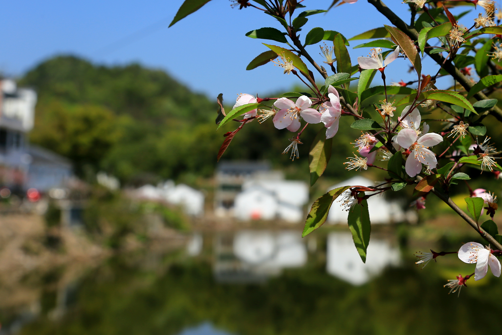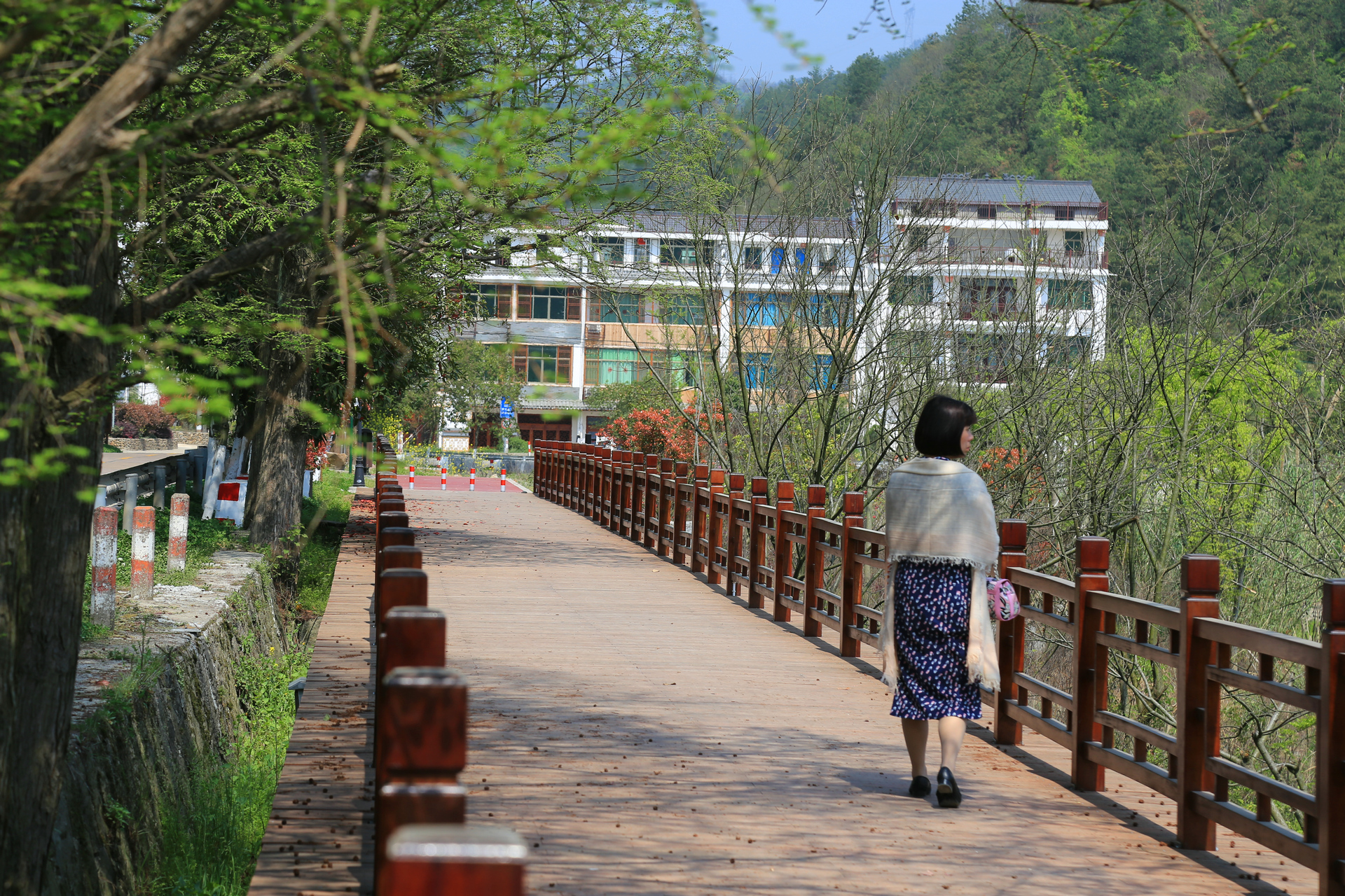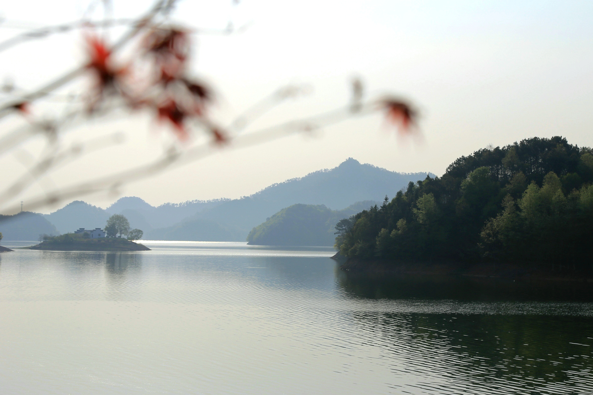 民宿的亲水平台很大,直面通济湖,一大早我们就在这里大摆poss,LP也收获了她此行最满意的一张照片,湖光山色,在水一方。