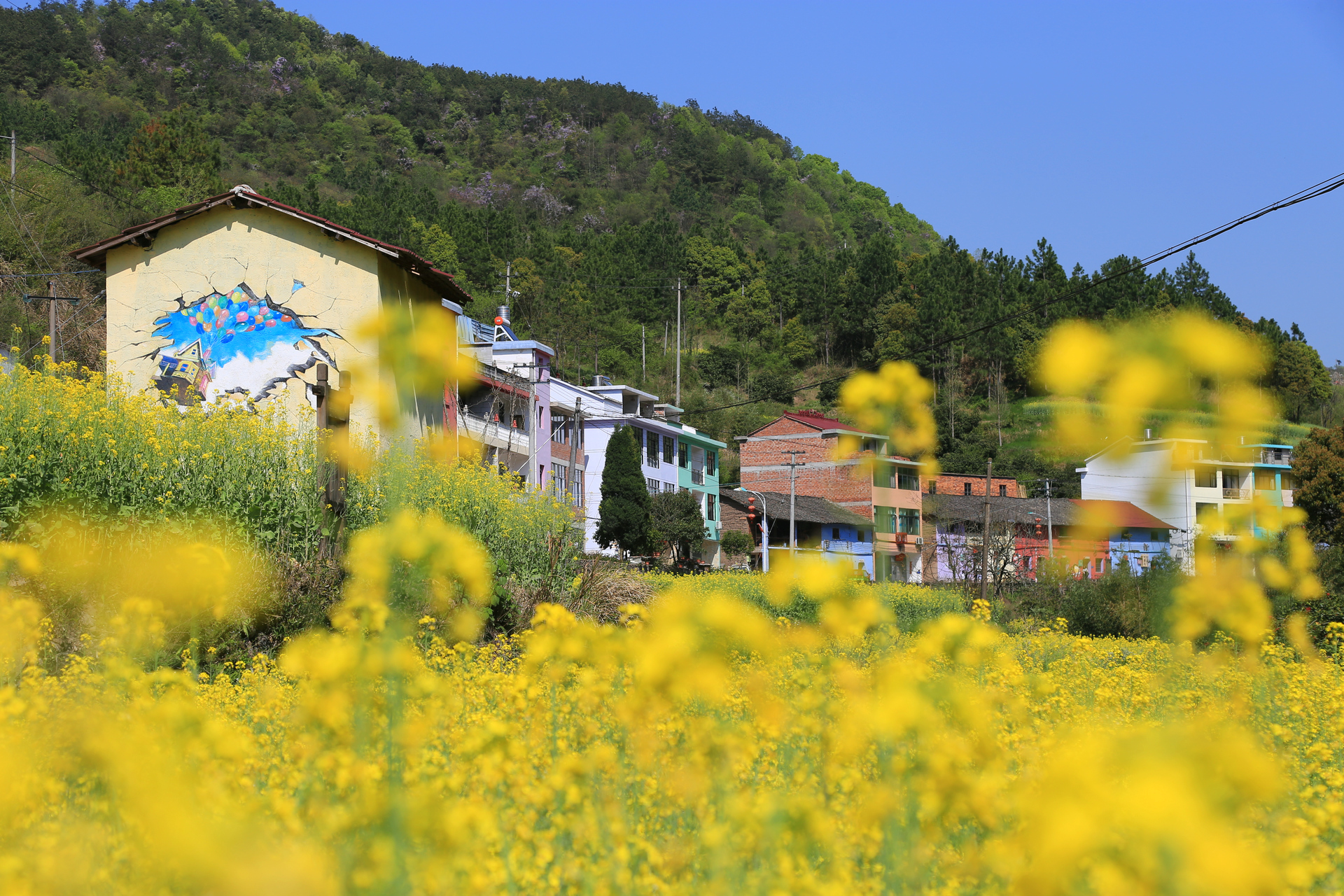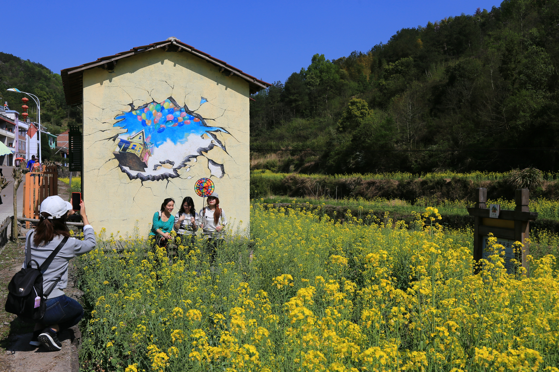 从民生村到罗源村很近,大概2公里,其中一小段的山路弯道比较急,号称中国彩色第一村的罗源村以3D墙画出门,不过我们觉得有些名过其实,村庄很小,墙画也不多,现在有油菜花做衬,景色倒也还行,不过我最喜欢的还是走在村中的那种感觉,仿佛回到了外婆家。