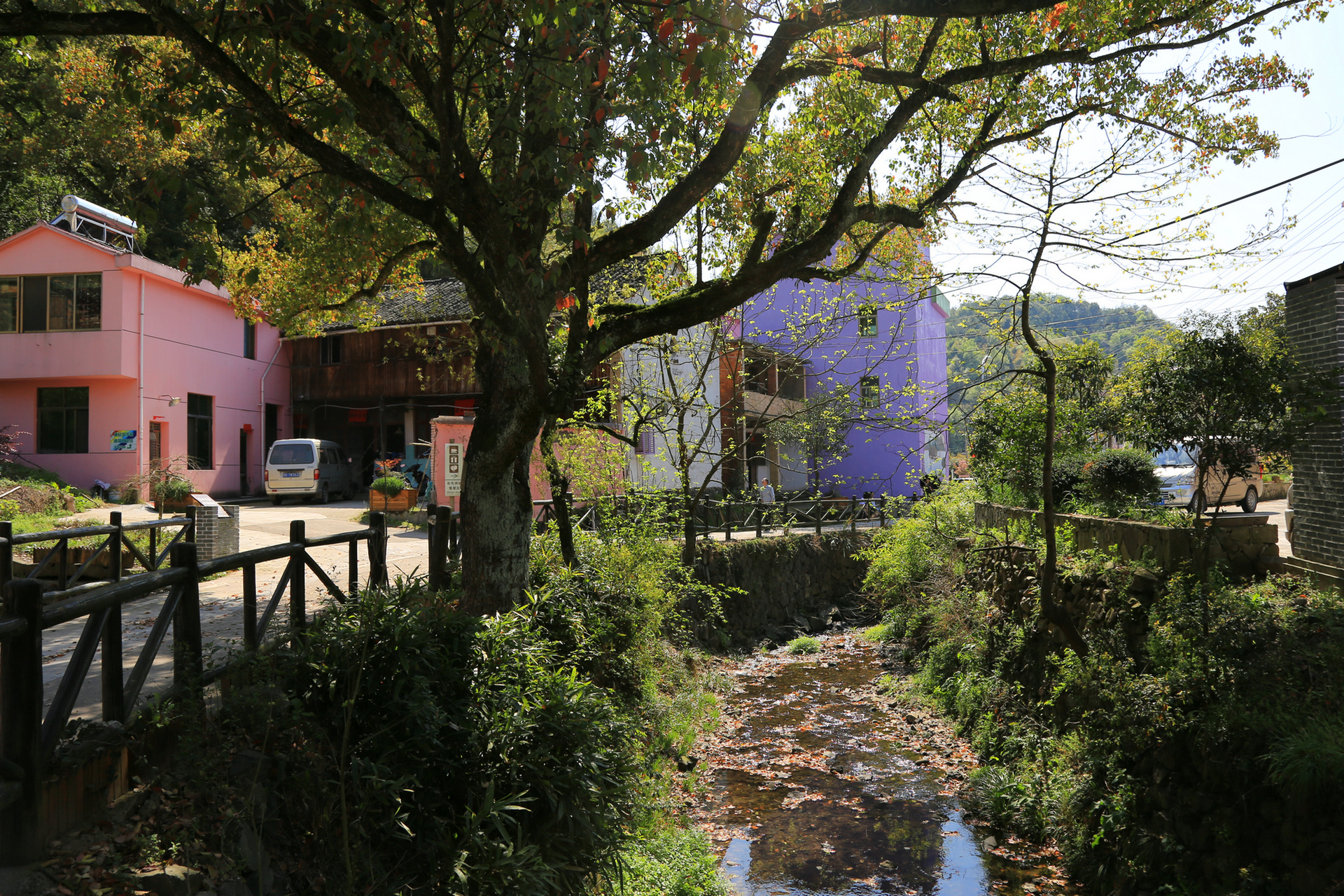 这是盐炒鸡蛋,感觉很新鲜,就拍了张,却并没有品尝。因为天气炎热(当天最高温度将近30度),同行的几人都懒得动,在小溪旁的树荫下打打盹聊聊天,体验下乡村的宁静和休闲,和摊贩的聊天中,得知这些墙绘都是每户人家自己出钱,价格也不便宜,当然规划是政府出面,而村民的实惠,就是通过吸引客源来搞搞副业,卖点当地特产,增加收入。