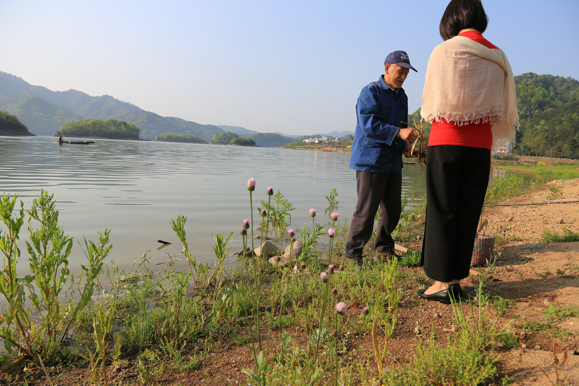 之后我们继续周边闲逛,偶遇一村民,在水面捡树根,据说这是接骨根,可入药,对跌打损伤有奇效。