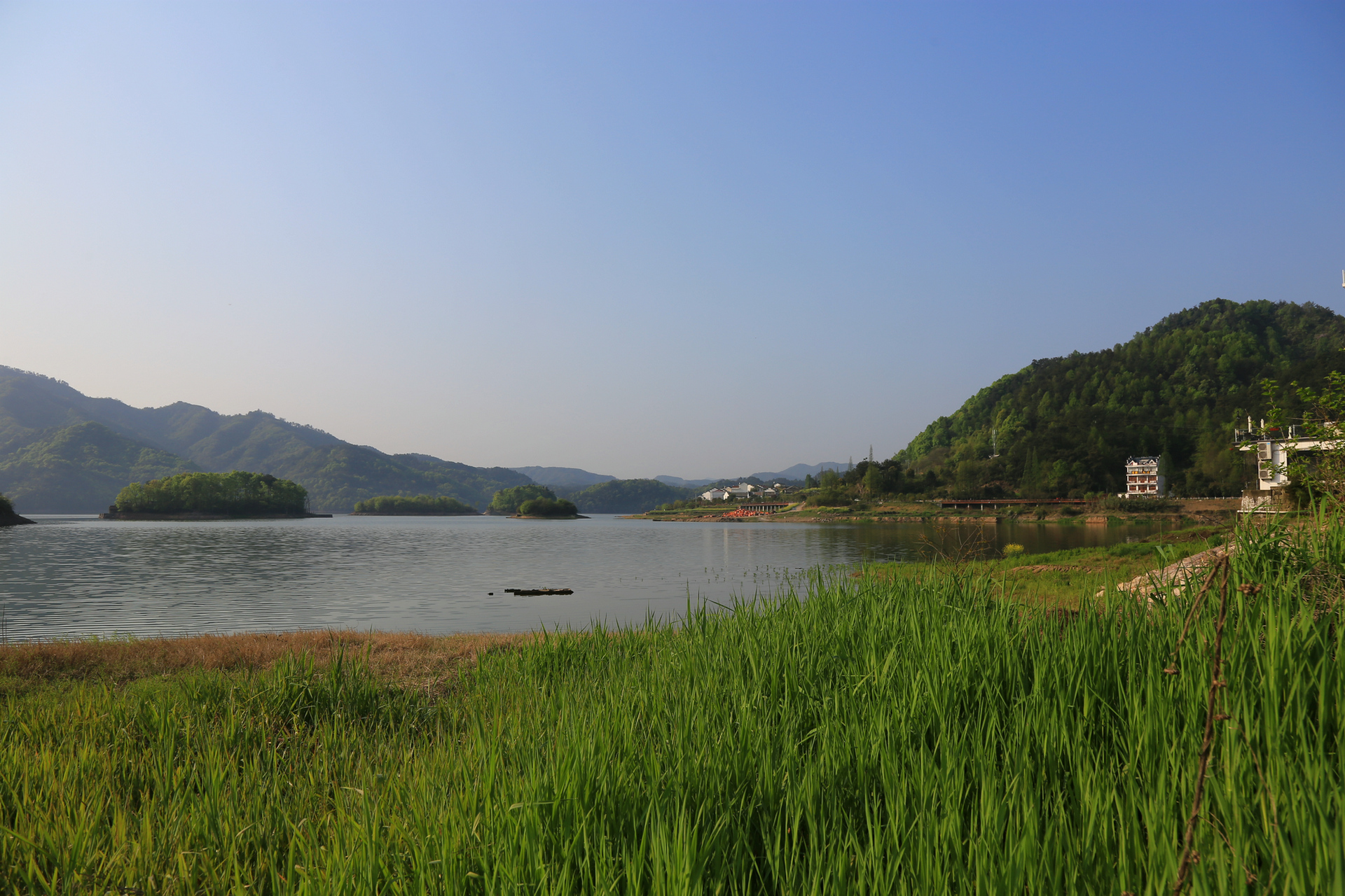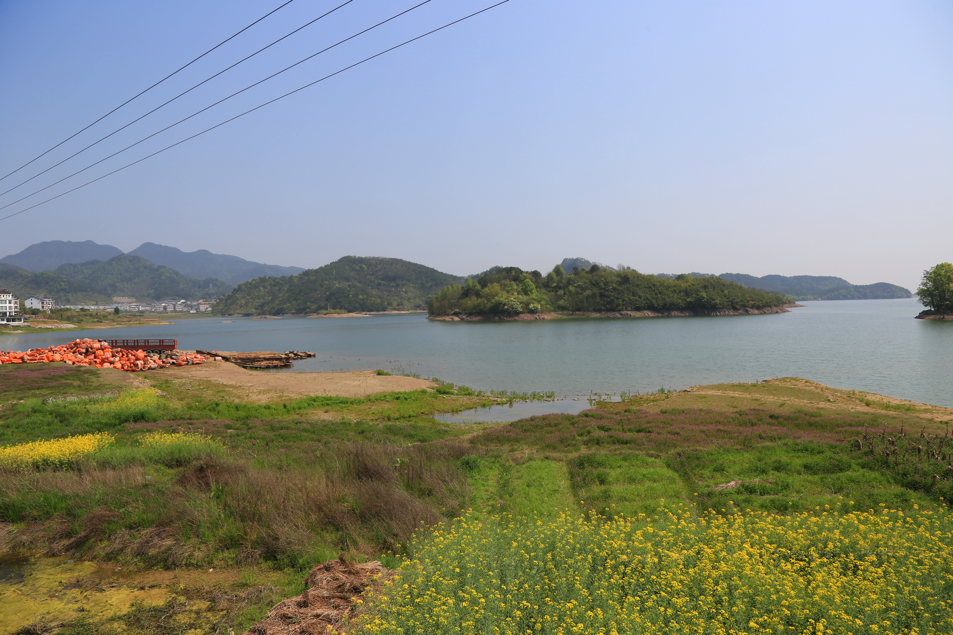 通济湖是个水库,现在也已经成了景点,不过这个景区不收门票,面积约6平方公里,这里风景秀丽,有“百岛湖”的美名,湖边散布了多个村庄,适合周末自驾休闲游。 第二天上午在民宿周边闲逛,感觉湖水浅了些,好在油菜花开,春意盎然。