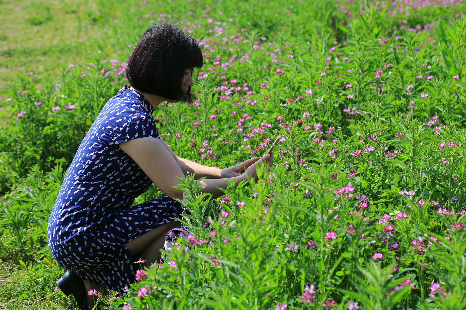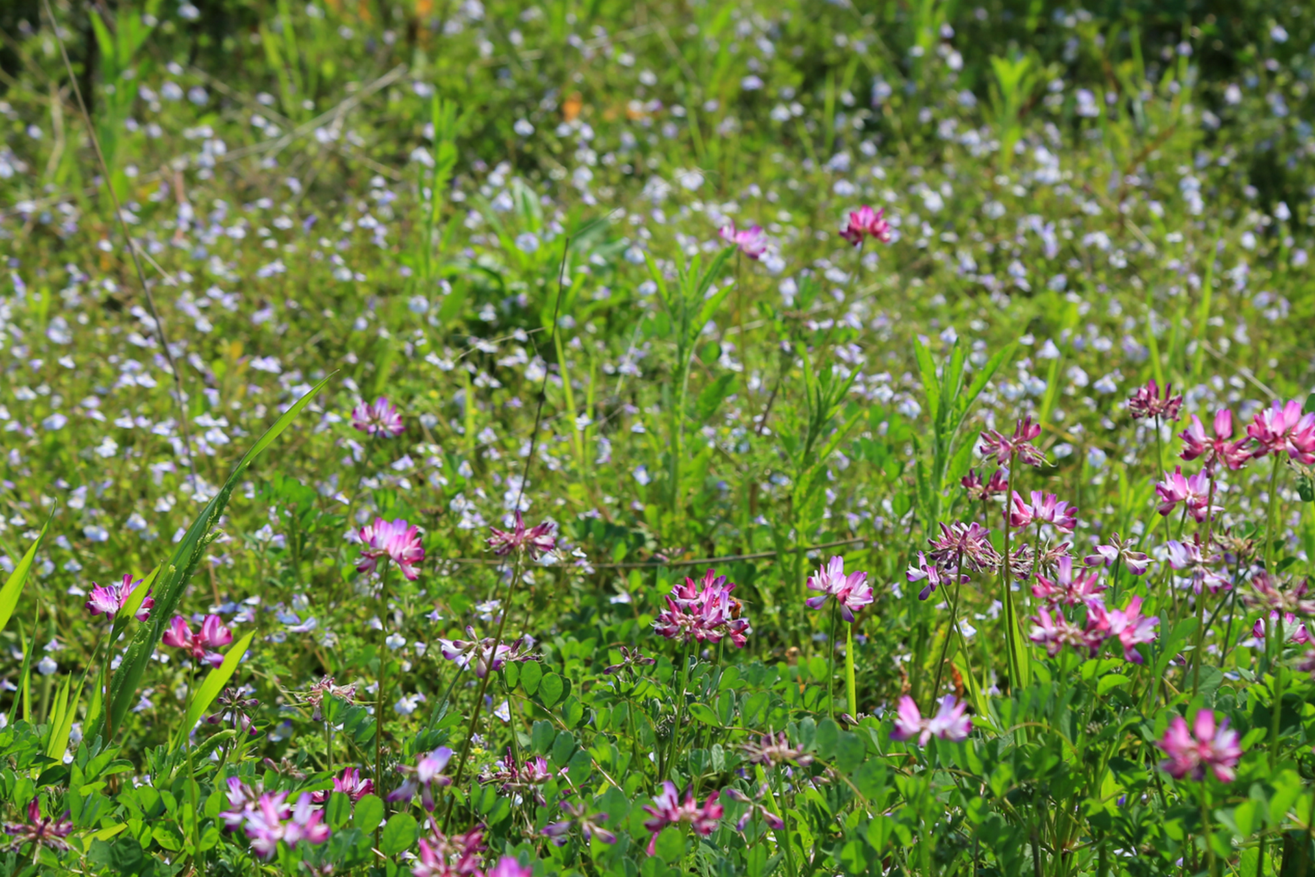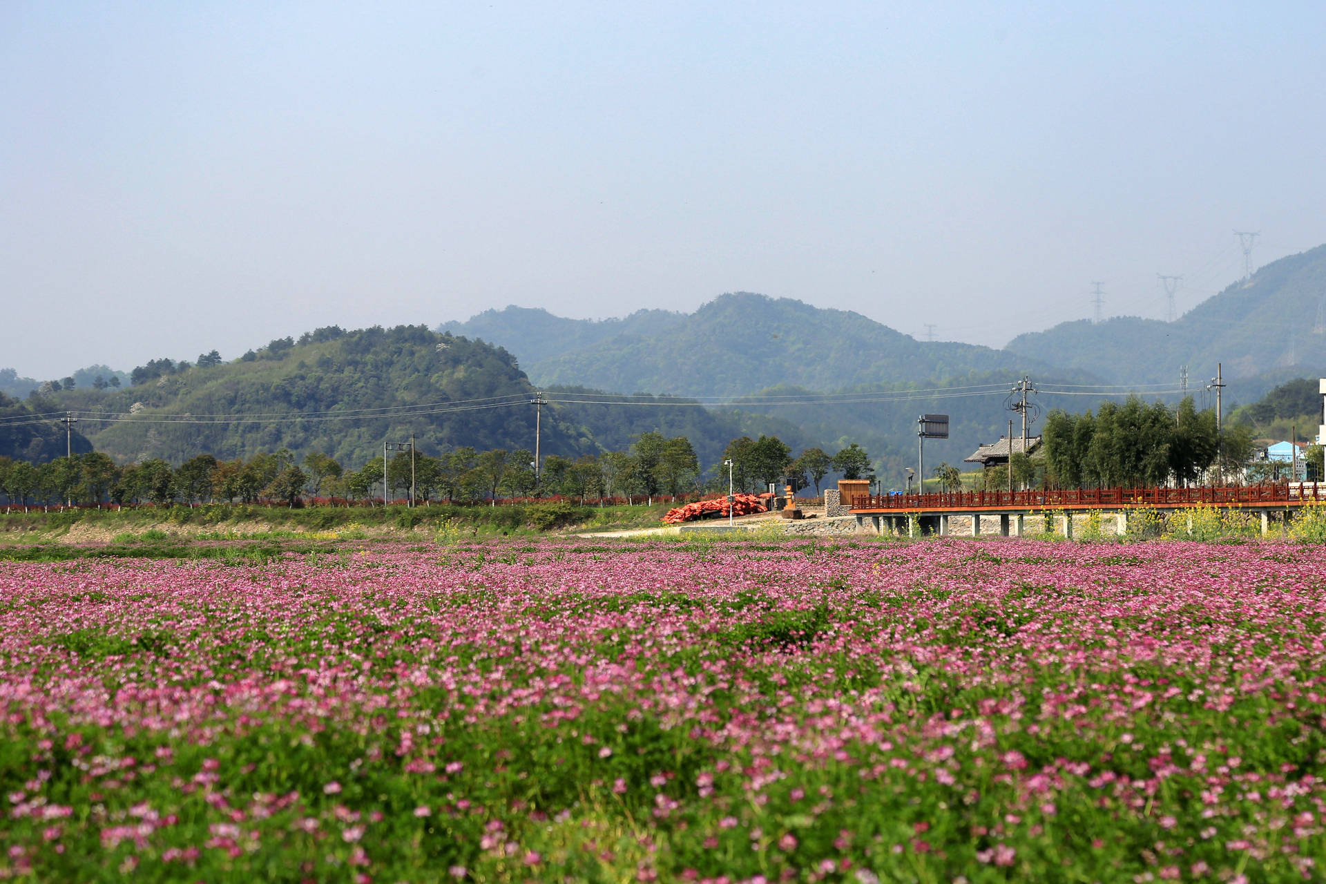 这里是通济湖的最东南角,离罗源村不远。盛开的花,学名紫云英,又名红花草,喜欢生长在温润的水边,是重要的绿肥和饲料。记得小时候,放学后的我们常常会带上镰刀跨上竹篮,择几簇鲜嫩的紫云英带回家清炒着吃,有一种清新宜人的草香味,不过那时候喜欢的,倒不是吃,而是可以和小伙伴在田野中撒野。