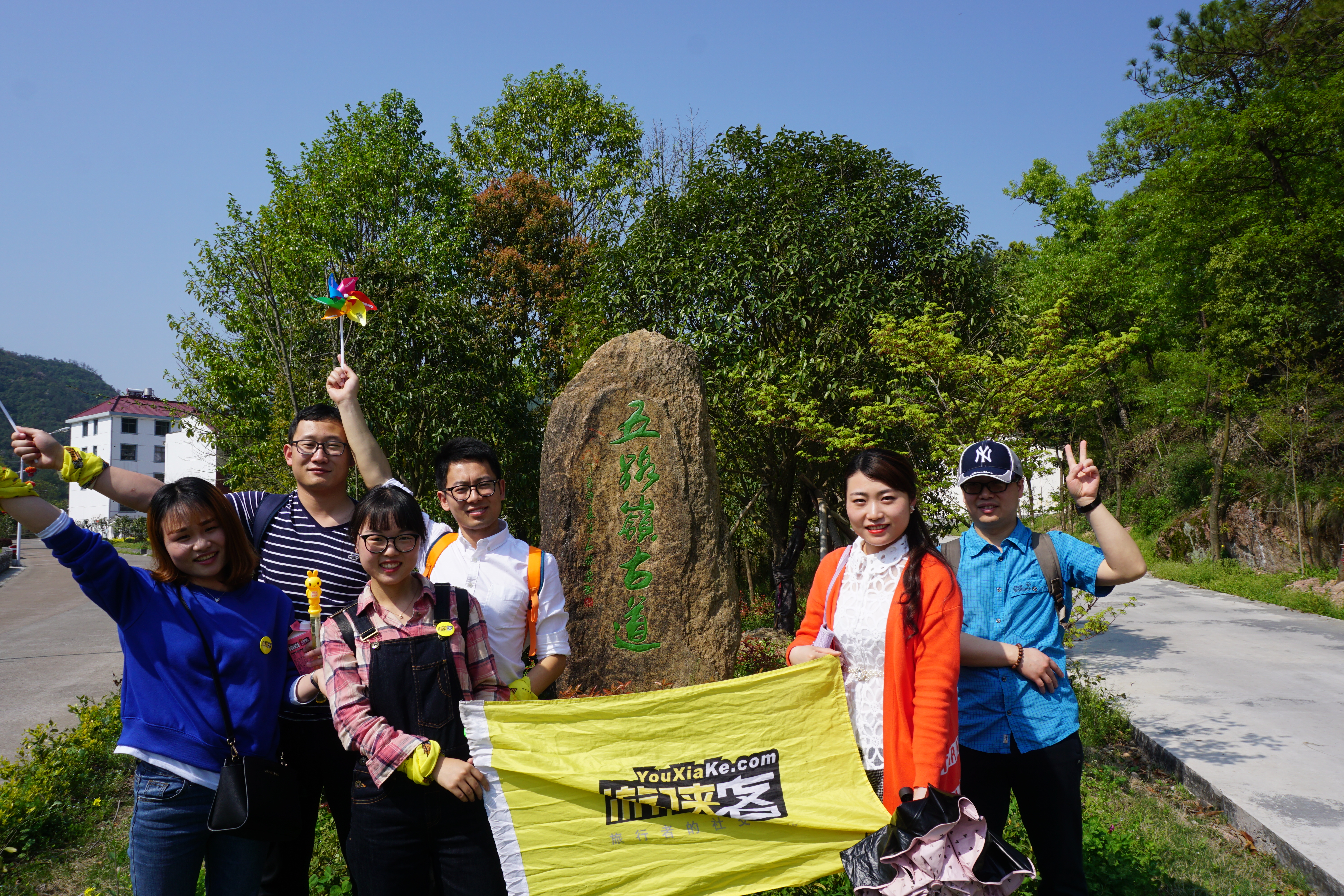 游侠6人 领队云猫4月1号愚人节。偶们不愚人6人团队照样发团。阳光明媚。春光无限。老天爷给偶们开了个小小的玩笑,让我们穿越到夏天。哈哈这些都无妨我们快乐赏花,徒步快乐游。集体照先呈现。